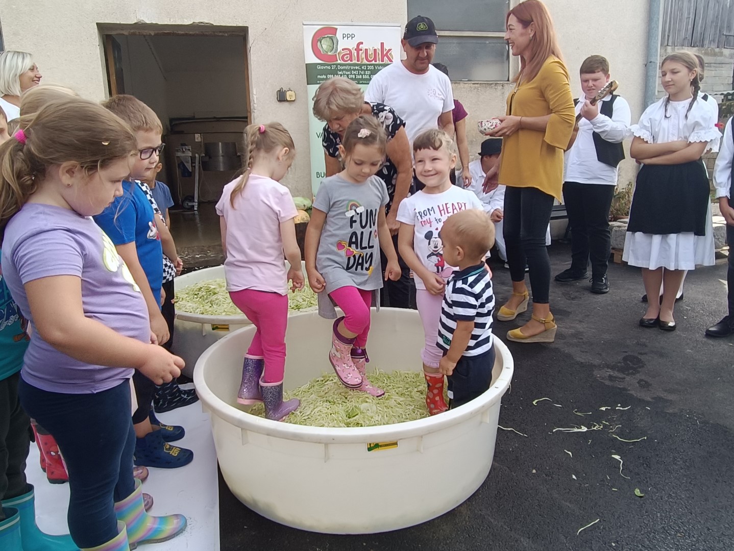 – Prvo smo obuli čizmice i onda smo gazili Varaždinsko zelje. Zakaj se gazi? Da bude fino! Malo se i posoli. I uopće nije bilo teško gaziti! – s velikim osmijehom na licu ispričali su mališani iz Dječjeg vrtića “Škrinjica” iz Vidovca koji su na gospodarstvu obitelji Cafuk u ponedjeljak sudjelovali na radionici o kiseljenju Varaždinskog zelja za zimnicu.