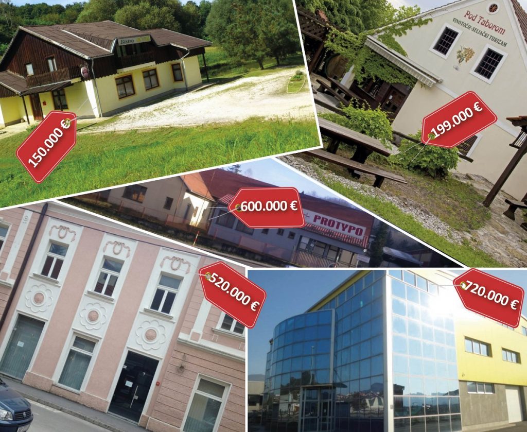 U Krapini se prodaju i dva nešto skuplja poslovna prostora. Prvi je zgrada od 1500 m2 u poslovnoj zoni, koja se sastoji od tri etaže. Prva etaža je uređena, dok su druge dvije neiskorištene. Istaknuta cijena je 720.000 eura.