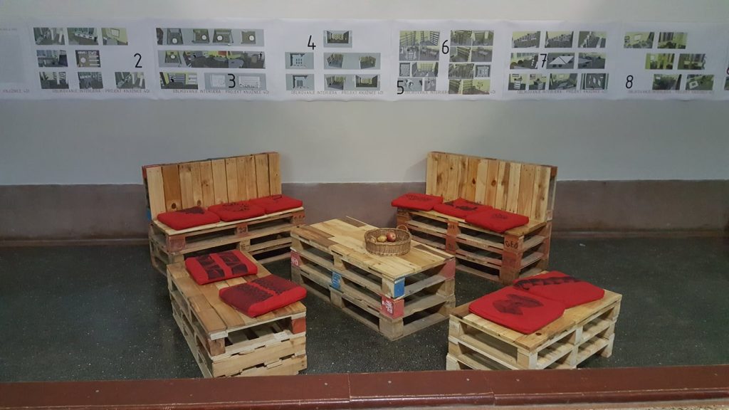 Radionica se održala u prostorima škole tijekom rujna i listopada. Učenici su grafičku tehniku visokog tiska integrirali u područje primijenjene grafike. Izradili su linoreške matrice s uzorcima koje su otisnuli na tekstil, konkretno na jastučnice za jastuke, koji su dio opreme za klupe, koje su pak izradili recikliranjem drvenih paleta. Dakle, osim što su osmislili i nacrtali tekstilni uzorak, inspiriran djelima Ksavera Šandora Gjalskog, izradili su i matrice koristeći nožiće i dlijeta za rad na linoleumu. Matrice su potom otisnuli na jastučnice koristeći grafičku prešu. Ujedno su pilili, rezali, spajali, brusili i bojali drvene palete te tako izradili četiri klupe, od kojih dvije s naslonom i stolić.