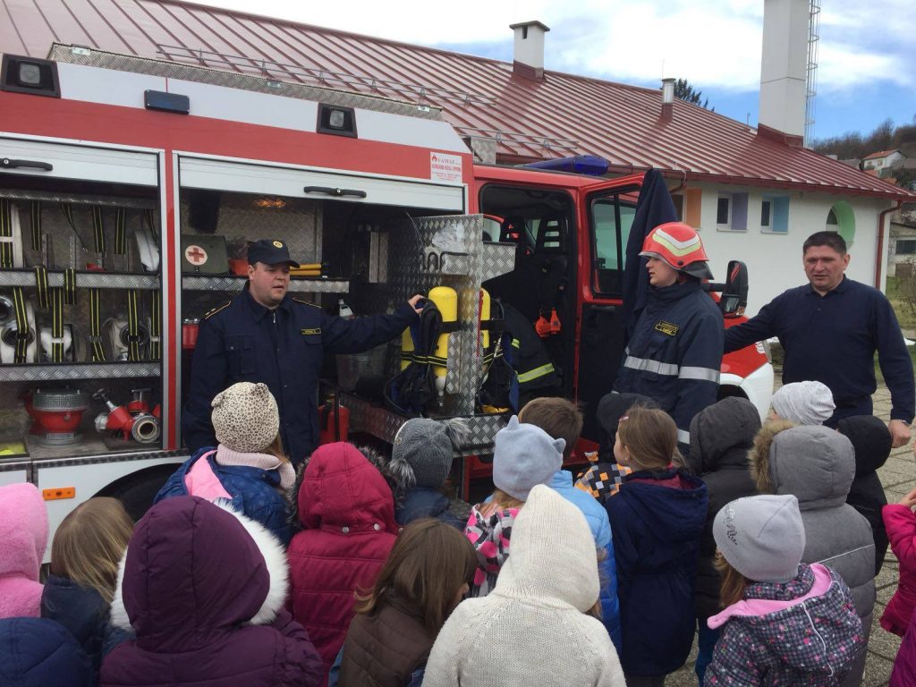 Djecu su upoznali s ulogom vatrogasaca i Crvenog križa i namjenskim korištenjem broja 112, a mališani su imali priliku pogledati što sadrži vatrogasno vozilo te se okušati u gašenju požara vatrogasnim aparatom i brentačom, uz asistenciju operativnih članova.