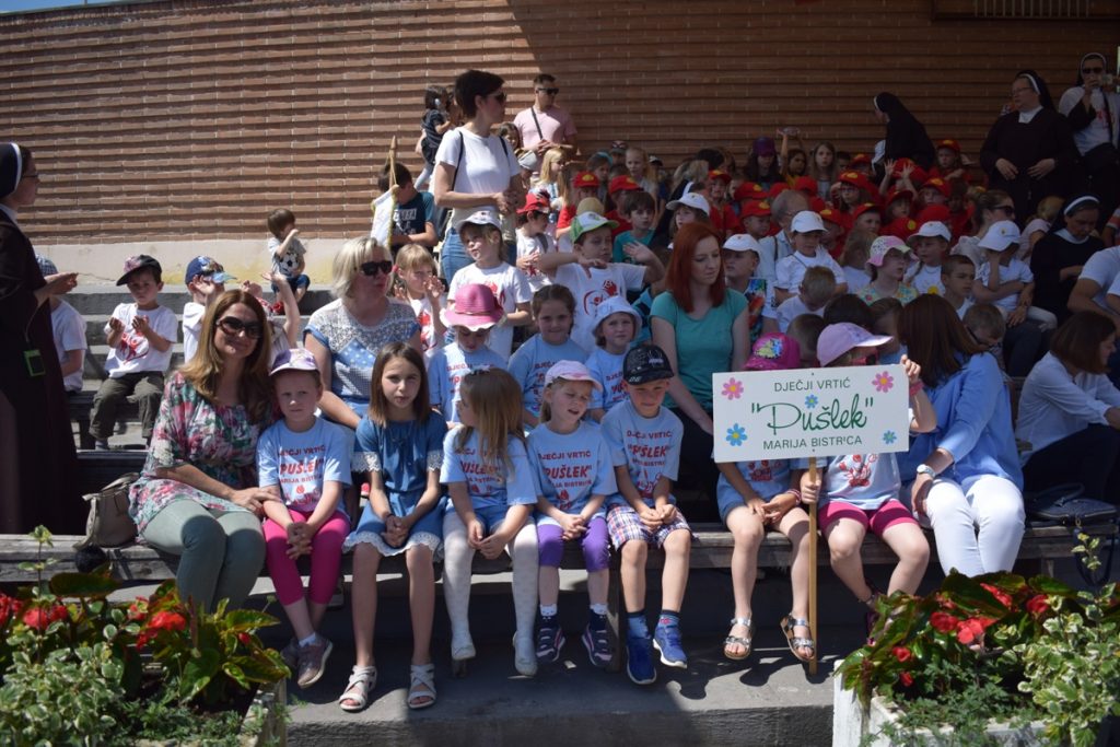 Već tradicionalno, zadnje subote u svibnju posebno je veselo u Svetištu Majke Božje Bistričke, jer se tada održava Hodočašće onih najmlađih – dječjih katoličkih vrtića Zagrebačke nadbiskupije. I ove su godine crkvu na otvorenom bl. Alojzija Stepinca ispunili brojni mališani u pratnji odgajatelja i odgajateljica te roditelja. Misu je predslavio rektor Svetišta MBB-e Domagoj Matošević, a hodočastili su sljedeći vrtići: DV “Sv. Josip” Zagreb, Križevci i Koprivnica, DV Svete Male Terezije Zagreb, Belica, Hrv. Leskovac i Strmec Samoborski, DV “Šegrt Hlapić”, Sesvete, DV Jordanovac, Zagreb, DV “Leptir” Sesvete, DV “Sv. Anđela Merici” Zagreb, DV “Sv. Vinko” Zagreb, DV “Sunčev sjaj – Nazaret” Zagreb, DV “Blažena Hozana” Zagreb, DV Dobri Zagreb i Vrbovec, DV “Brat sunce” Zagreb, DV “Marija Petković” Zagreb, Dječje jaslice “Cvjetnjak” Zagreb, DV “Cvjetnjak” Samobor, DV Vrbnik Zagreb, DV Kustošija Zagreb, DV “Iskrica”, DV “Kolibri”, Zagreb, DV Vrapče, Zagreb, DV “Vrtuljak”, Zaprešić, DV “Sveta Marija Magdalena, Sela kod Siska, DV “Sv. Uršula” Varaždin, DV Milana Sachsa, Zagreb,DV “Zraka sunca”, Križevci, DV “Sv. Franjo” Zagreb i DV “Pušlek” Marija Bistrica.