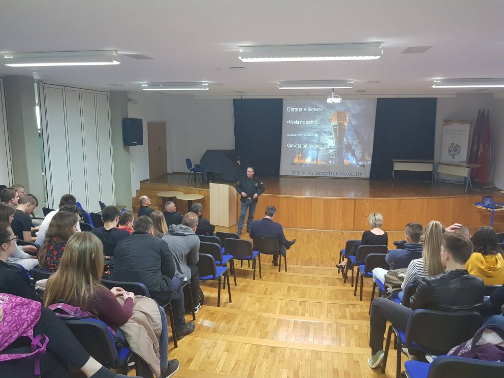 U sklopu projekta “Očuvanje digniteta Domovinskoga rata i promicanje istine o Domovinskom ratu”, članovi Udruge Specijalne jedinice policije Barun iz Zlatara i Udruge ratnih veterana Tigrovi Krapinsko – zagorske županije, u četvrtak su održali predavanje u Srednjoj školi Krapina na temu “Obrana Vukovara”. Predavanje je bilo organizirano za učenike četvrtih razreda, dan prije nego su otputovali na terensku nastavu u grad Vukovaru.