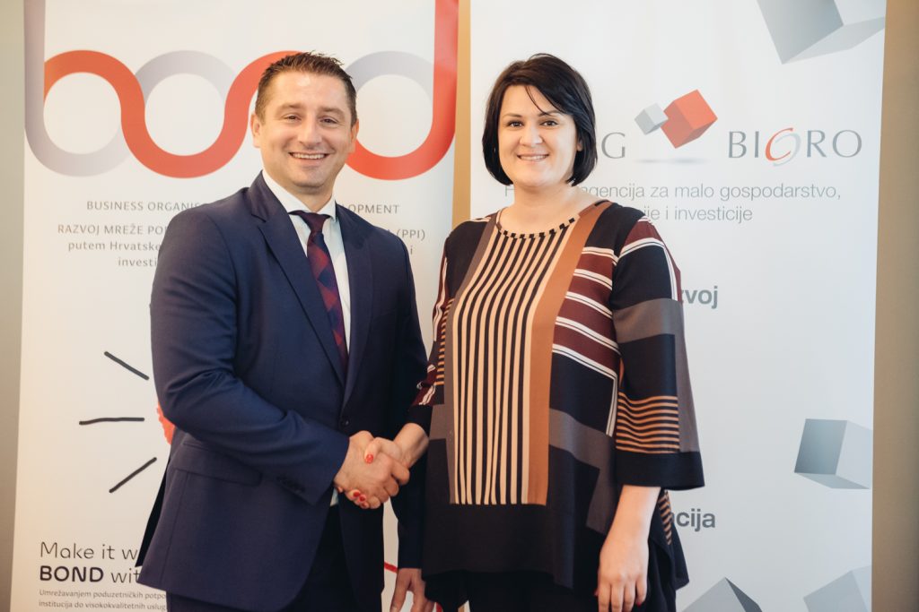 Hrvatska agencija za malo gospodarstvo, inovacije i investicije (HAMAG-BICRO) predstavila je na završnoj konferenciji rezultate pilot projekta “BOND – Razvoj mreže poduzetničkih potpornih institucija” (PPI), koji je pokrenut 2017. godine, s ciljem okupljanja različitih vrsta poduzetničkih potpornih institucija na jednom mjestu, kako bi se malim i srednjim poduzetnicima olakšao pristup informacijama. Konačni cilj projekta bio je razviti standardizirane visokokvalitetne usluge poduzetničkih potpornih institucija, koje će biti regionalno ravnomjerno rasprostranjene. Kroz projekt BOND, nastoje se smanjiti razlike u regijama i svim poduzetnicima u Hrvatskoj pod jednakim uvjetima olakšati pristup poslovnim znanjima, vještinama i informacijama ključnim za rast i razvoj poslovanja.