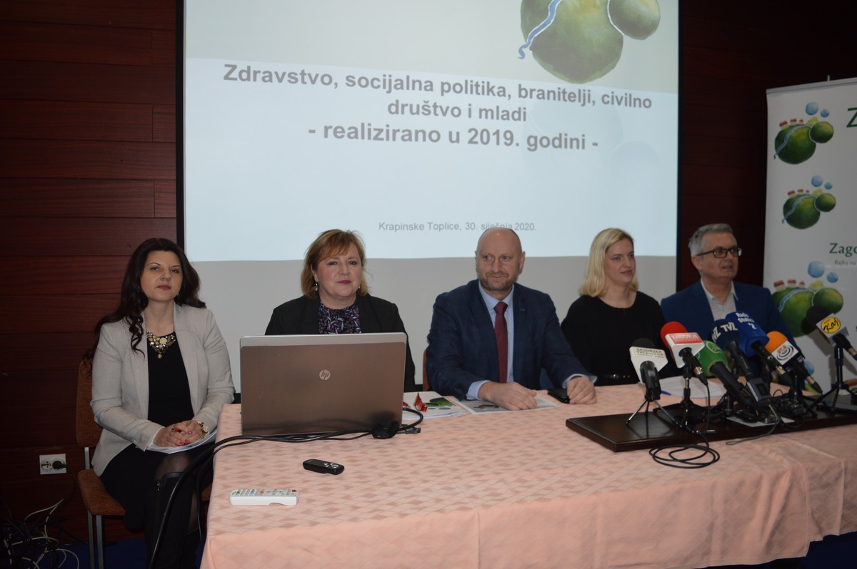 U Specijalnoj bolnici za medicinsku rehabilitaciju Krapinske Toplice predstavljeni su rezultati ulaganja Krapinsko – zagorske županije u 2019. i 2020. godini u resoru zdravstva, socijalne politike, branitelja, civilnog društva i mladih. Okupljene su pozdravili domaćini, ravnateljica Specijalne bolnice za medicinsku rehabilitaciju Krapinske Toplice Željka Žnidarić te načelnik Krapinskih Toplica Ernest Svažić. Tom prilikom ravnateljica Žnidarić u svom se obraćanju kratko osvrnula na ono što se u bolnici radilo kroz 2019. godinu.