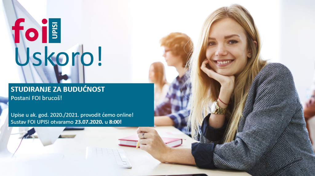 Slijedom nepovoljnih epidemioloških uvjeta u Hrvatskoj, a slijedeći preporuke matičnog Sveučilišta u Zagrebu i ostalih nadležnih institucija, Fakultet organizacije i informatike iz Varaždina najavljuje da će upis u prvu godinu studija akademske godine 2020./2021. biti omogućen isključivo online i to putem aplikacije FOI UPISI na adresi upisi.foi.hr.
