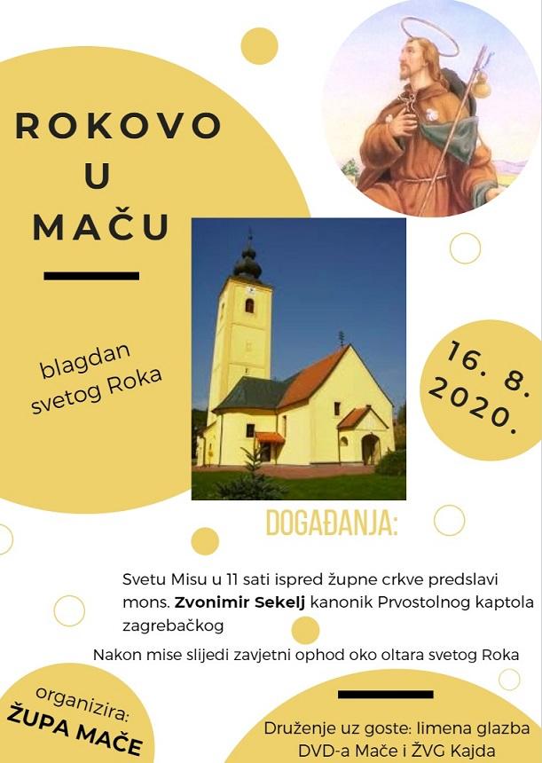 Župa Bezgrešnog začeća Blažene Djevice Marije u Maču i ove godine organizira Rokovo u Maču, proslavu sv. Roka, na sam blagdan, 16. kolovoza. Svetu misu ispred župne crkve u Maču u 11 sati predslavit će mons. Zvonimir Sekelj, kanonik prvostolnog Kaptola zagrebačkog. Nakon mise slijedi zavjetni ophod oko oltara Svetoga Roka, a organizirano je i druženje, uz Limenu glazbu DVD-a Mače i nastup ŽVG Kajda. (lb)