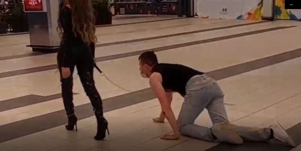 U varaždinskom trgovačkom centru Lumini u srijedu oko 20.30 sati vrlo neobičan prizor – provokativno odjevena djevojka na uzici vodi mladića.