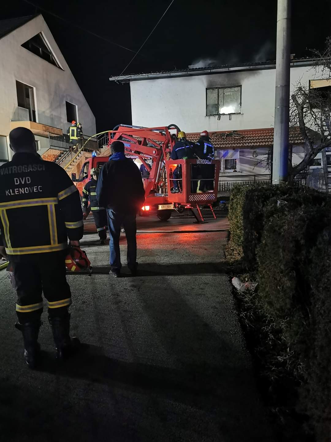 Na intervenciju su izašla ukupno 34 vatrogasca iz Javne vatrogasne postrojbe Krapina, DVD-a Prišlin-Hum, DVD-a Straža i DVD-a Klenovec, a ukupno je na požarištu bilo 11 vatrogasnih vozila.