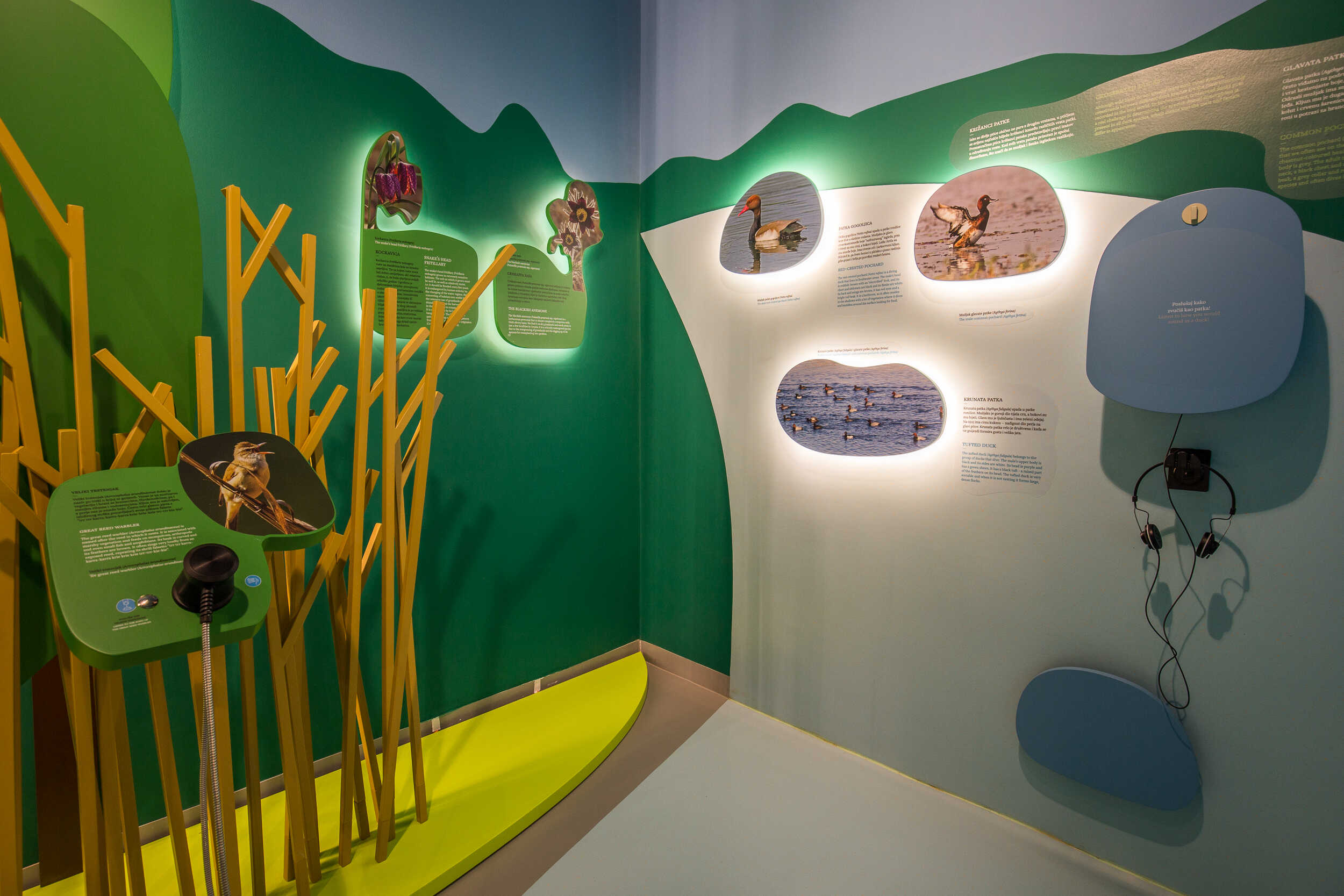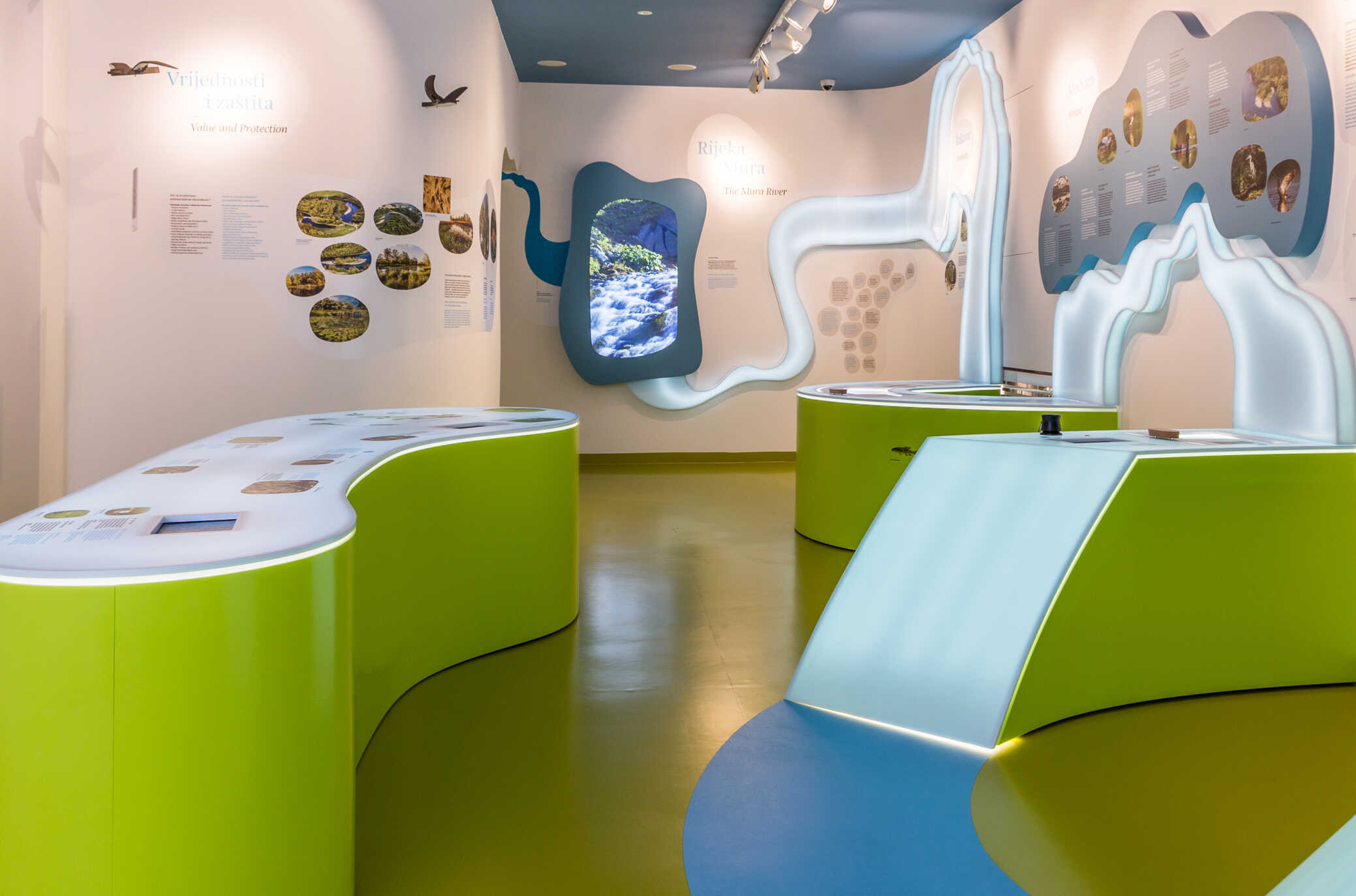 Nakon ulaza u glavnu zgradu Centra, svakog posjetitelja dočekuje moderno opremljen info pult. Potom slijedi kružna živopisna priča koja teče kroz dvije suvremeno opremljene galerije Mura i Drava sa stalnim interpretacijskim postavom. Upotrebom moderne tehnologije, stvoren je osobit doživljaj i dinamična predstava zanimljivosti biljnog i životinjskog svijeta Međimurja.