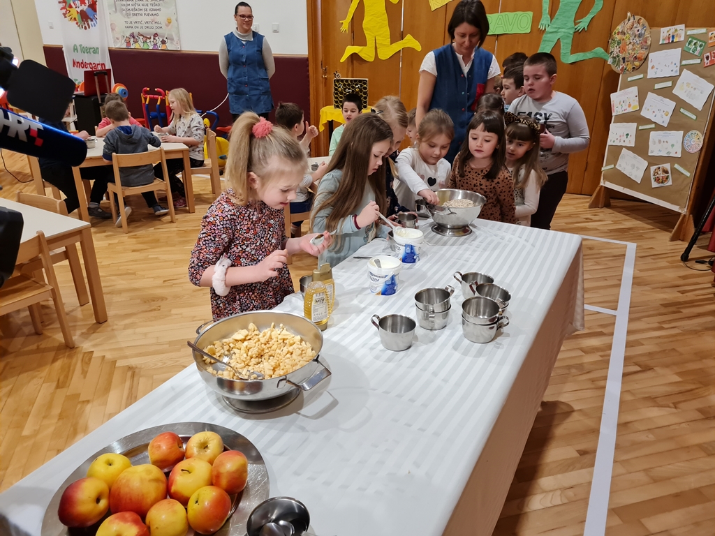 Djeca srednje i starije skupine najprije su kroz edukativno predavanje mogla naučiti koje skupine namirnica trebaju jesti, u kojim količinama i zašto su one važne za njihovo zdravlje, a nakon toga su odradili radionice poznavanja namirnica te izrade zdravih obroka u kojima su ih sami pripremali.