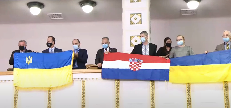 Na današnjem zasjedanju Sabora desila se pomalo neuobičajena situacija. Naime, dok je premijer Vlade Andrej Plenković govorio o stravičnom krvoproliću koji se događa u Ukrajini, Saborom se prolomio dugotrajan pljesak, a izvješene su i hrvatska i ukrajinska zastava.