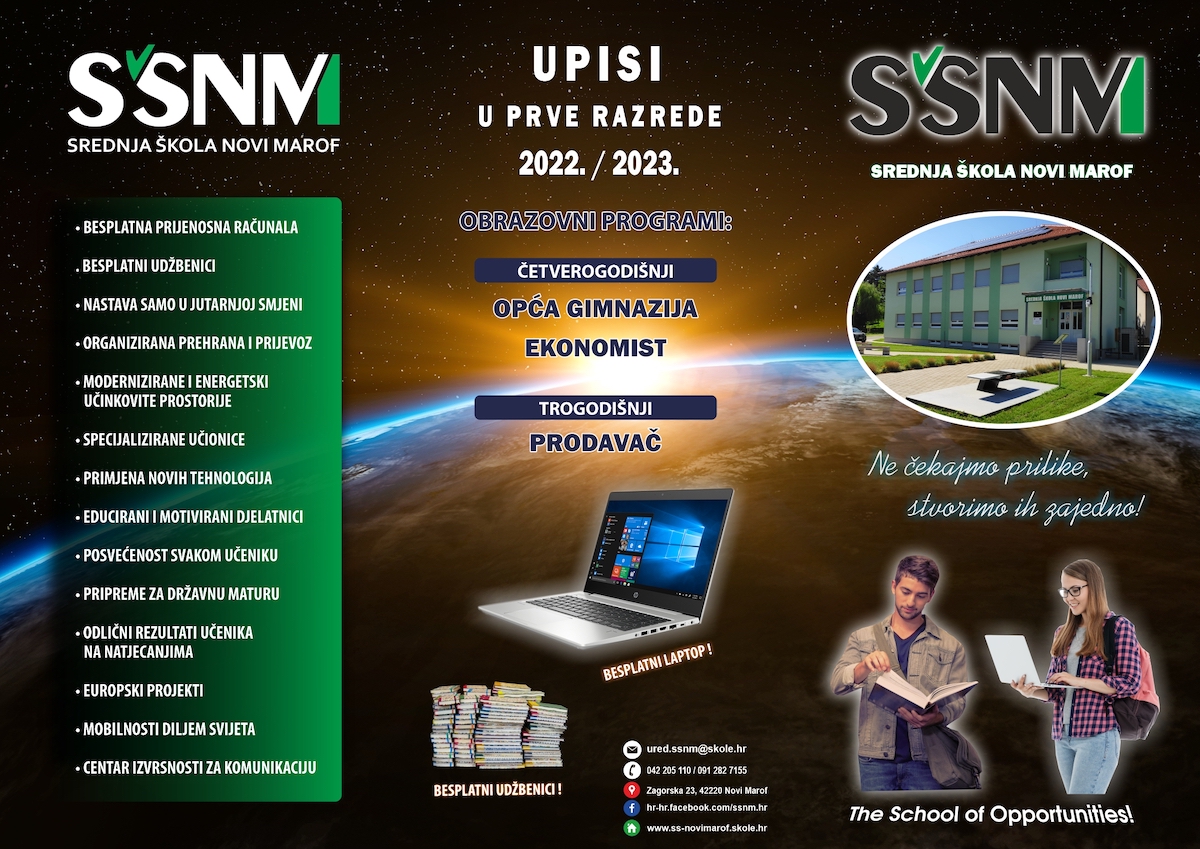 Srednja škola Novi Marof prije nepunih mjesec dana proslavila je svoj dan, a i u ovoj se godini ima za pohvaliti odličnim rezultatima svojih učenika koji su sudjelovali na dosadašnjim razinama natjecanja. Na školska natjecanja prijavila su se ukupno 39 učenika u 12 područja, a njih 15 plasiralo se na županijsku razinu natjecanja iz hrvatskog jezika, njemačkog jezika, matematike, fizike, biologije, geografije, povijesti, logike, LiDraNa i LIK 2022.