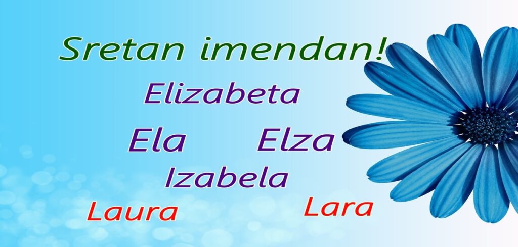 Elizabeta je vrlo staro ime, rašireno po cijelome svijetu – dolazi iz Biblije. Preko grčkog (Elisábet) i latinskog (Elisabeth), dolazi se do oblika imena Elizabeta. Drugi oblici imena su Ela, Elza i Izabela.