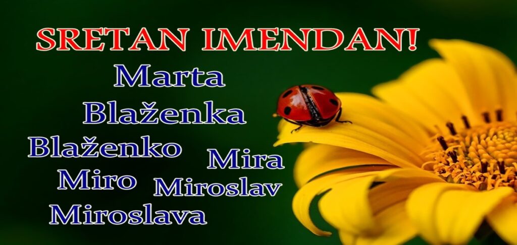 Danas imendan slave Marta, Blaženka, Blaženko, Mira, Miro, Miroslav i Miroslava