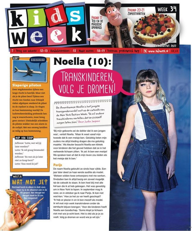 Noella, za koju modni znalci kažu da bi mogla zaraditi svoj prvi milijun već u sljedećoj godini, prvi put se identificirala kao transrodna osoba sa samo dvije i pol godine, što je potvrdila njezina majka Dee, a koja se sada identificira kao transrodni muškarac i navodi Noellu kao inspiraciju.