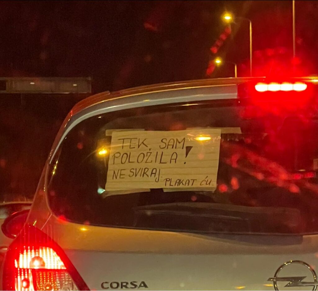 -Neku večer u Zagrebu. Ugledah mladu djevojku kako me iz auta do mog ponizno i sramežljivo pita može li se ubaciti. Upadaj, pokažem joj, na što mi je uzvratila ekstremno zahvalnim osmjehom iz kojeg se iščitavala gomila olakšanja. Tad već shvatih da je puno stresa prisutno, a onda se prestrojila i vidio sam ovo – napisao je Saša Tadić na svom Facebook profilu uz fotografiju na kojoj se vidi poruka koju je djevojka zalijepila na stražnjem vjetrobranskom staklu svoga automobila.