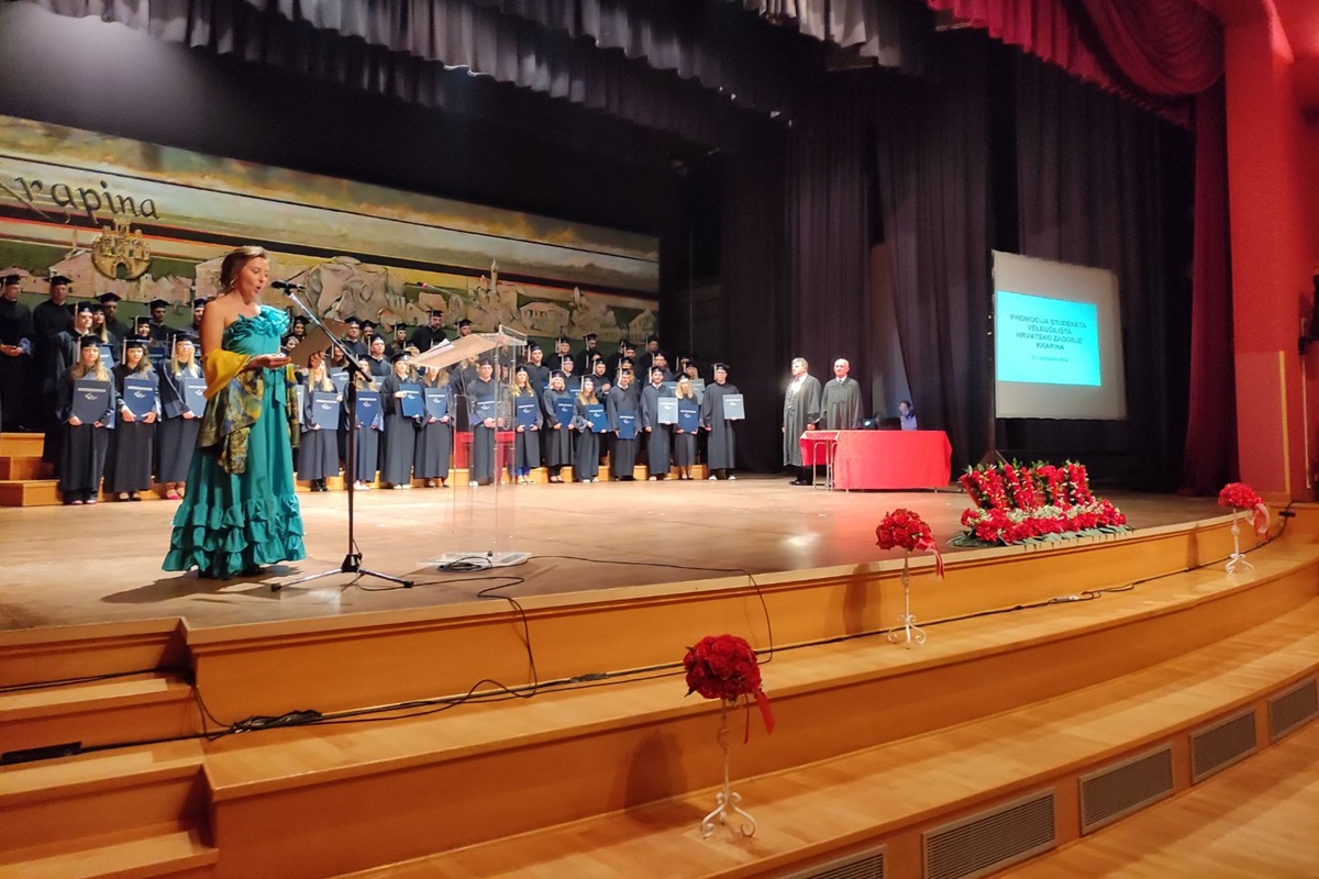 Festivalsku dvoranu u Krapini, u četvrtak su preplavili svečani tonovi obojani odličnom atmosferom. Povod? Promocija sedme generacije prvostupnica i prvostupnika krapinskog Veleučilišta Hrvatsko zagorje za koju se, nakon godina pandemije i ograničenja, tražilo mjesto više. Mnogi su tako sinoć imali prilike uživati u proslavi i gromoglasnim pljeskom nagraditi vrijedne studente, nastavnike, asistente, vanjske suradnike i stručne službe.