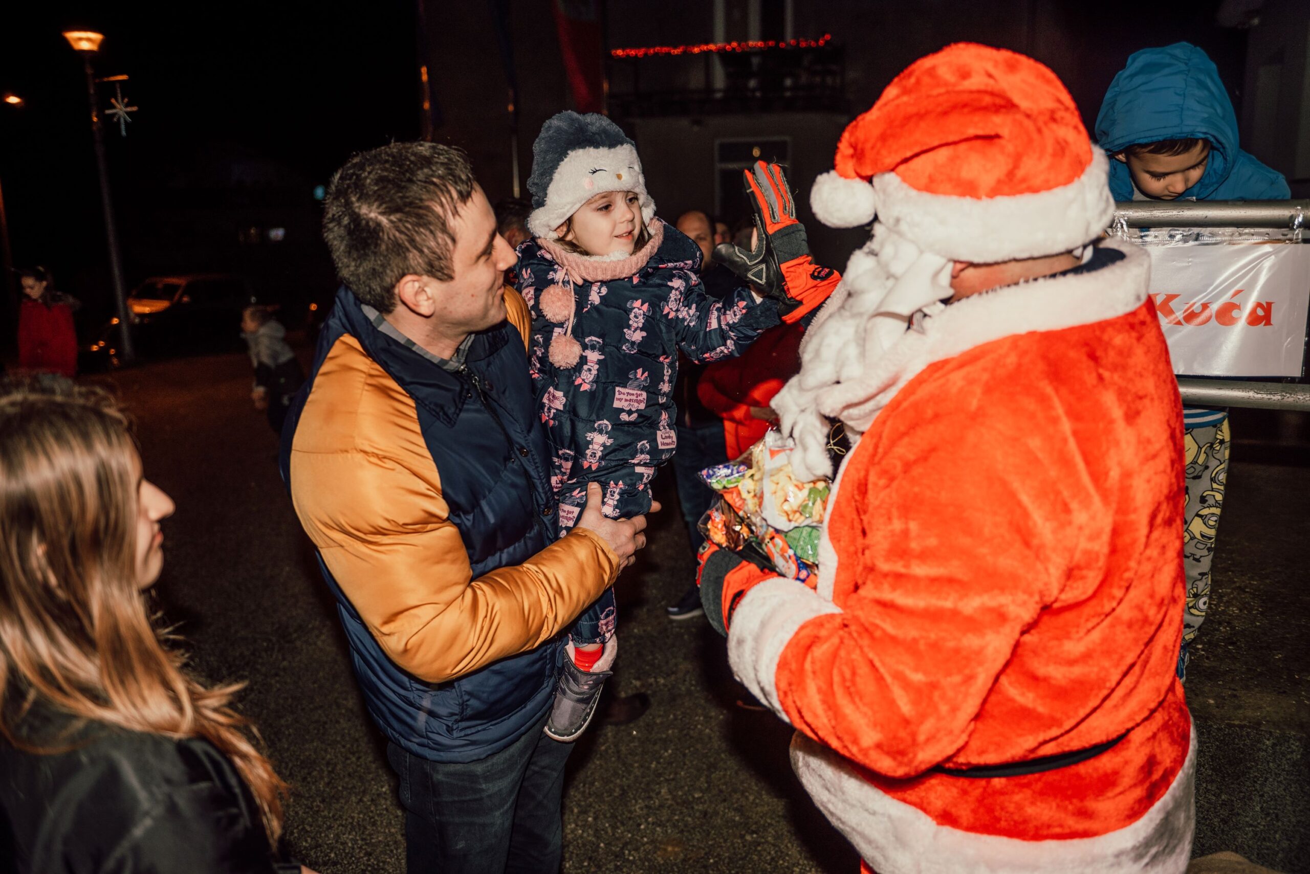 Božića, naravno, nema bez Djeda Mraza, pa je tako u svoju kuću u Donju Voću stigao omiljeni dječji bradonja i razveselio najmlađe mještane, a cijela je večer zaokružena vatrometom.