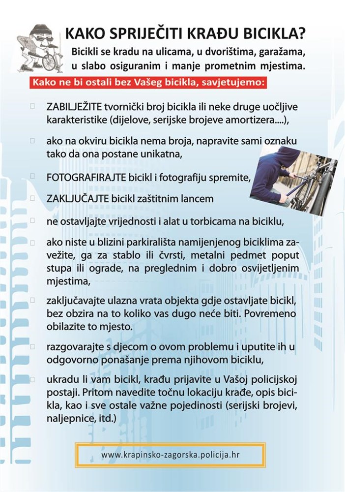 U sklopu aktivnosti, uz edukaciju građana o mjerama koje mogu poduzeti kako ne bi bili žrtve krađe bicikla i kako sigurno sudjelovati u prometu, provedena je i besplatna i za građane dobrovoljna evidencija bicikla. Tom prilikom su svi zainteresirani biciklisti dobili naljepnicu za bicikl s evidencijskim brojem koja se lijepi na ramu bicikla te letak sa savjetima o zaštiti bicikla od krađa i sigurnom bicikliranju zagorskim cestama.