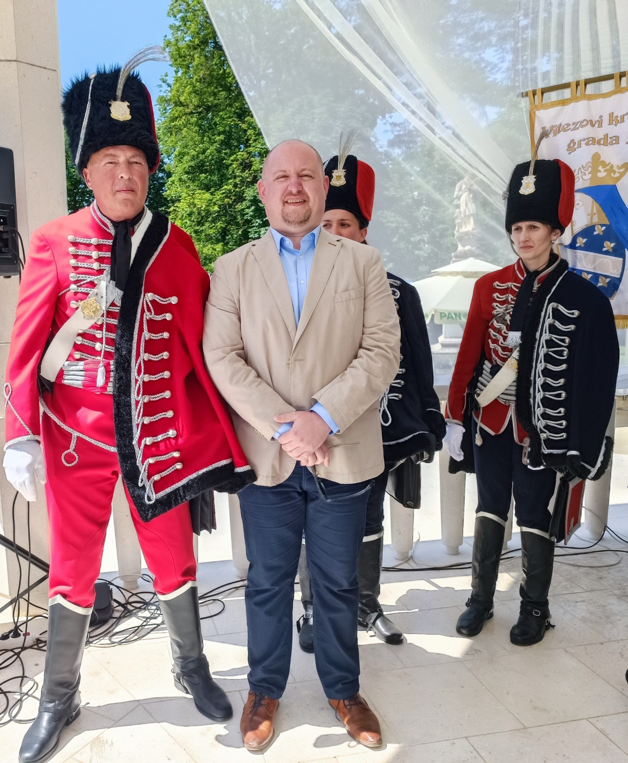 U ime Varaždinske županije pozdravne riječi uputio je Tomislav Pajtlar koji je podsjetio kako se Hrvatski husarski zdrug osnovao u Varaždinu i to na inicijativu župana Anđelka Stričaka i predsjednika Husarske garde Mirka Krambergera.