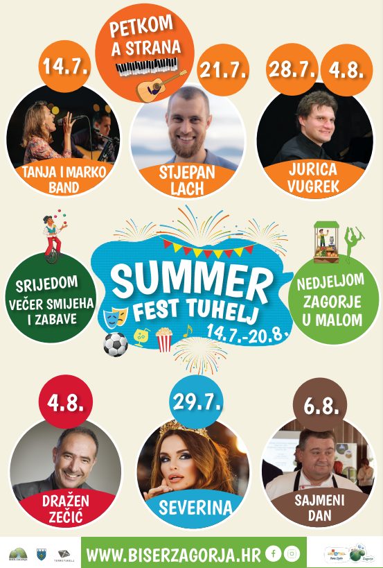 Kolovoz se nastavlja uz pregršt zabave za odrasle i djecu, a uoči obilježavanja Dana općine Tuhelj i blagdana Velike Gospe, slijede tradicionalne procesije i svečane mise te pučke veselice. U goste dolaze Aleksandar Lazić i dvojac Aleks Curać Šarić i Saša Turković sa svojim stand up nastupima.