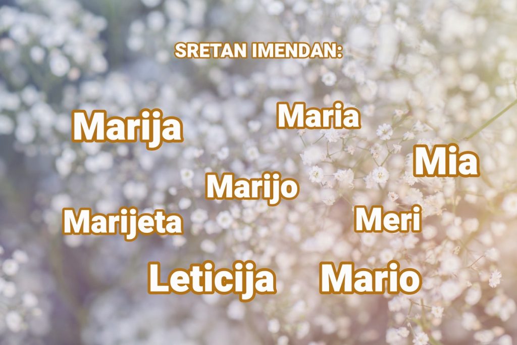 Marija je biblijsko ime. Naš je oblik Marija prema latinskom izričaju: Maria. U izvornome hebrejskom jeziku je Mirjam. U aramejskom jeziku ime se izgovara Mariam, pa jedno tumačenje kaže da dolazi od riječi mar(a) – gospođa, uzvišena ili prema staroegipatskoj riječi mry(t) – ona koju Bog ljubi. Drugi tumače da hebrejska riječ Mirjam dolazi od hetitske riječi (imena) Maria u značenju koja je kao koplje, riječ mari, naime, znači koplje. Muški oblik imena je Mario ili Marijo, a drugi oblici imena su Marijeta, Mia, Meri i Maria.