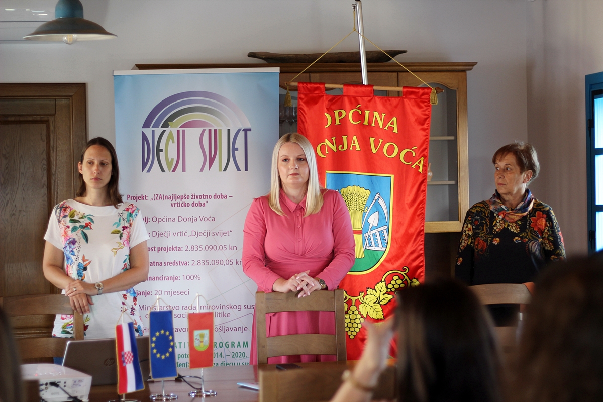 – Nama je taj projekt bio prvi takve vrste pa je samim time bio i izazovan, ali nam je iznimno drago što smo se na njega odlučili. Prvo bih zato izrazila zahvalu roditeljima bez čijeg povjerenja ne bi bilo ove priče te njihove djece zbog kojih stremimo boljoj kvaliteti i uvijek gledamo kako učiniti nešto novo. Drugi iznimno bitan kotačić cijelog projekta, jeste vi dragi djelatnici. Sretna sam i žalosna što smo došli do kraja projekta. Sretna jer mogu biti ponosna na vaš rad u koji ste dali svoj puni trud, a nekima od vas ovo je bilo i prvo radno mjesto. Nadam se kako ćemo se družiti opet u bliskoj budućnosti, ponovno na nekom novom projektu – kazala je Hajdin uz zahvale Europskom socijalnom fondu te svim ostalim dionicima bitnima za ostvarenje takvih projekata, a posebice načelnicima koji znaju prepoznati nešto kvalitetno za svoje mještane, kao što to čini načelnica Donje Voće Sanja Kočet.