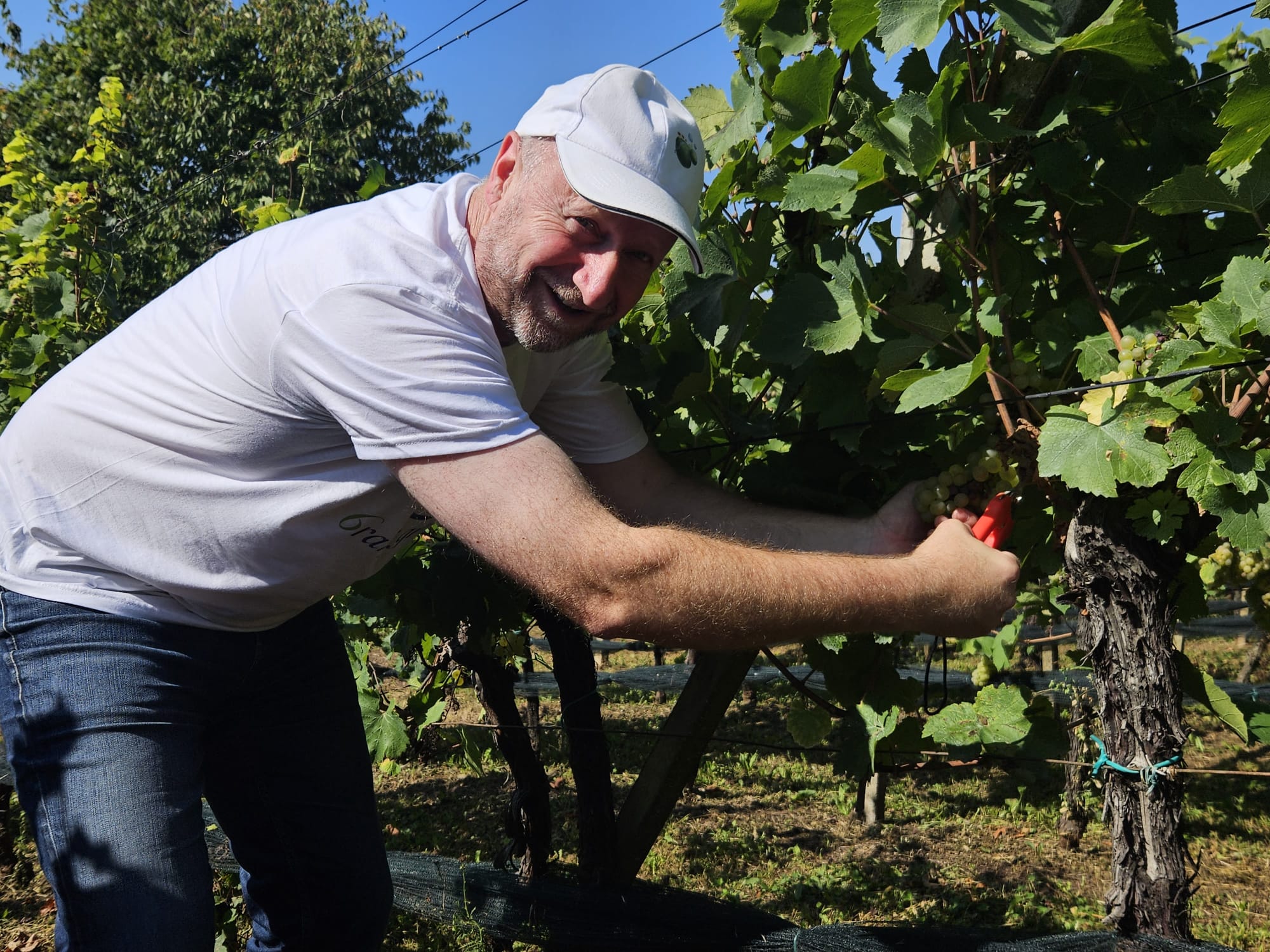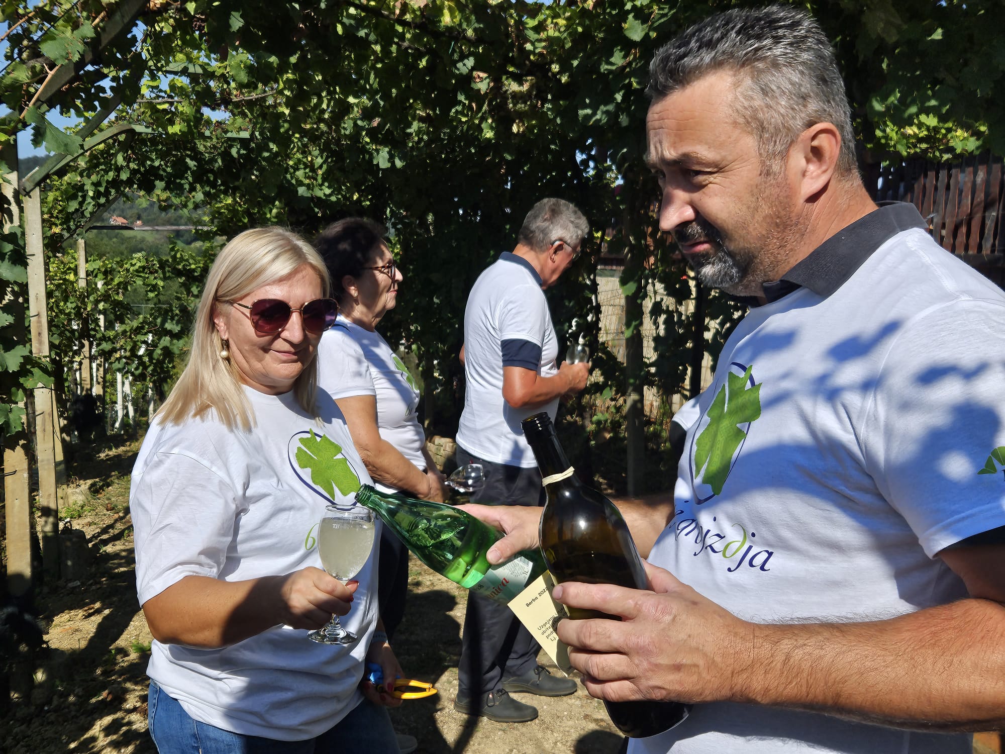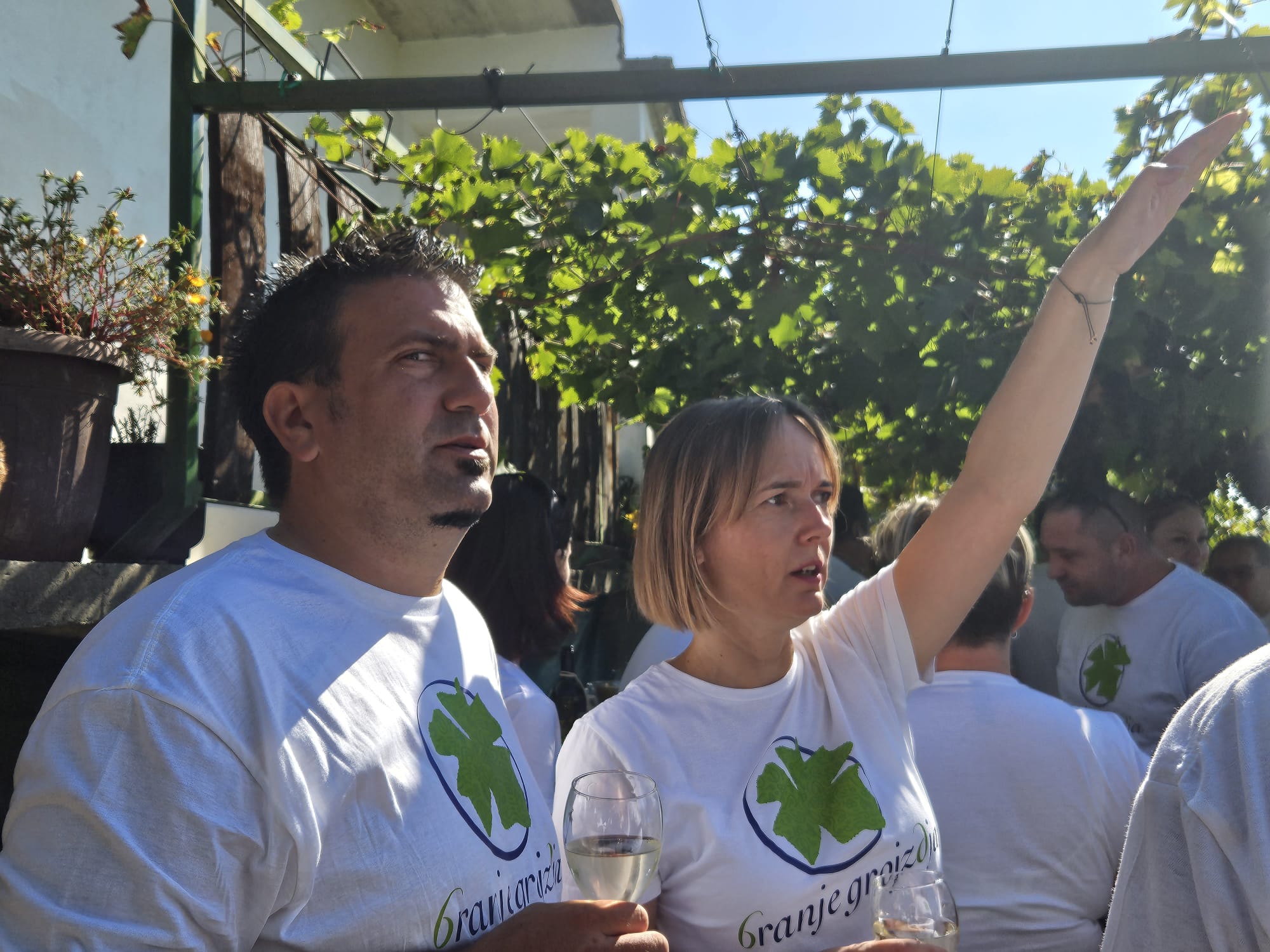 Prije same berbe okupljenima je upute dao domaćin Josip Cvek koji je otkrio u šali kako ga je obitelj, kad su ćuli da će po protokolu morati govoriti, držali tri dana na ‘suhom’ jer kako kažu čašica mu da dar govora. Uz pozdrav Josip Cvek je ispratio berače na berbu Pinota i Chardonnay.