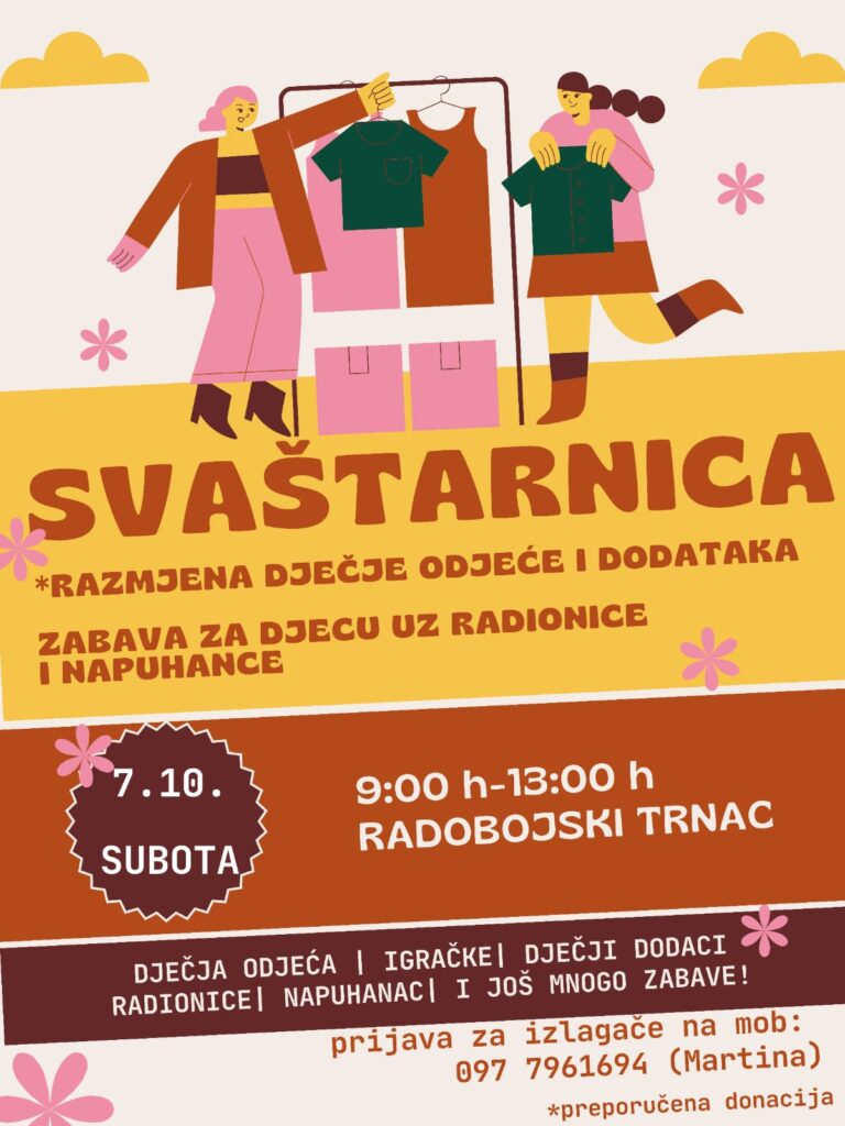 Ove subote će se od 9 do 13 sati u Radobojskom trnacu održati ‘Svaštarnica’ s ponudom odjeće za djecu.