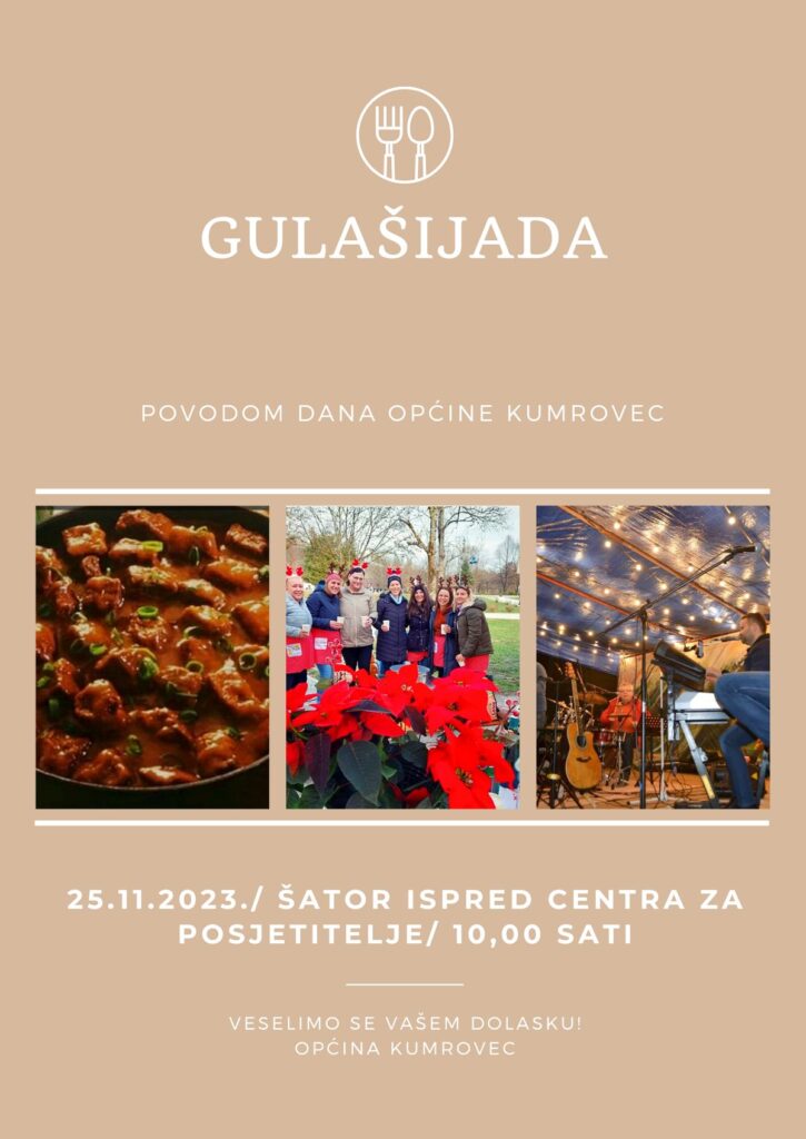 Povodom Dana općine Kumrovec, ove subote, 25. studenoga, bit će održana tradicionalna ‘Gulašijada’ koja će se održati u šatoru postavljenom ispred Centra za posjetitelje.
