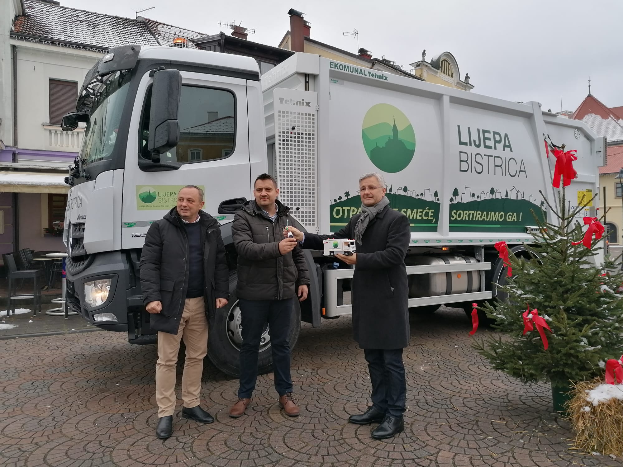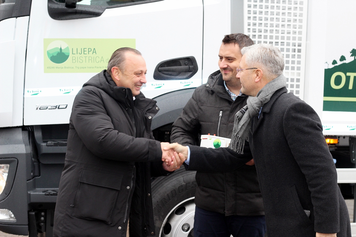 Promrzli i kišni utorak u Mariji Bistrici uistinu bi bio tmuran da se na glavnom trgu, nije našao potpuno novi kamion. Njime se može pohvaliti komunalno poduzeće ‘Lijepa Bistrica’, a radi se o vozilu za prijevoz miješanog komunalnog otpada čiji su ključevi danas i službeno predani poduzeću. Vrijedno je 207.000 eura bez PDV-a.