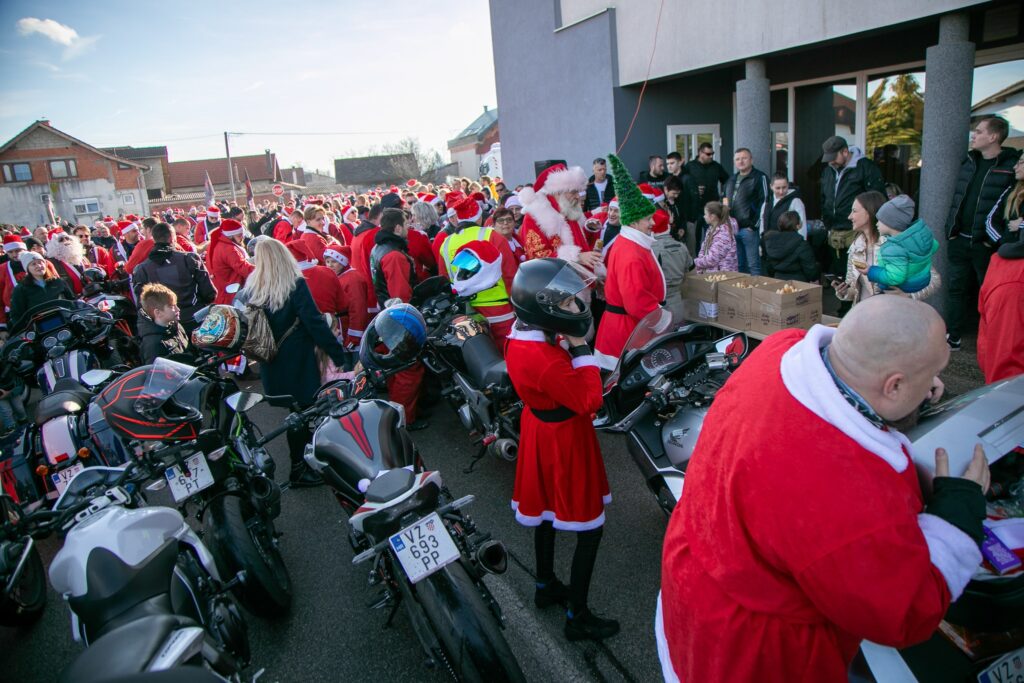 Motomrazovi su prvo zagrmjeli Varaždinskom ulicom kroz Sračinec, da bi se zaustavili ispred Doma kulture, gdje su djeci podijelili darove.