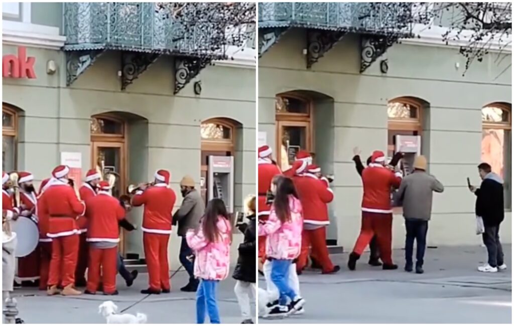 VIDEO: Otplatio kredit pa ispred banke slavio uz svirače odjevene u Djeda Mraza