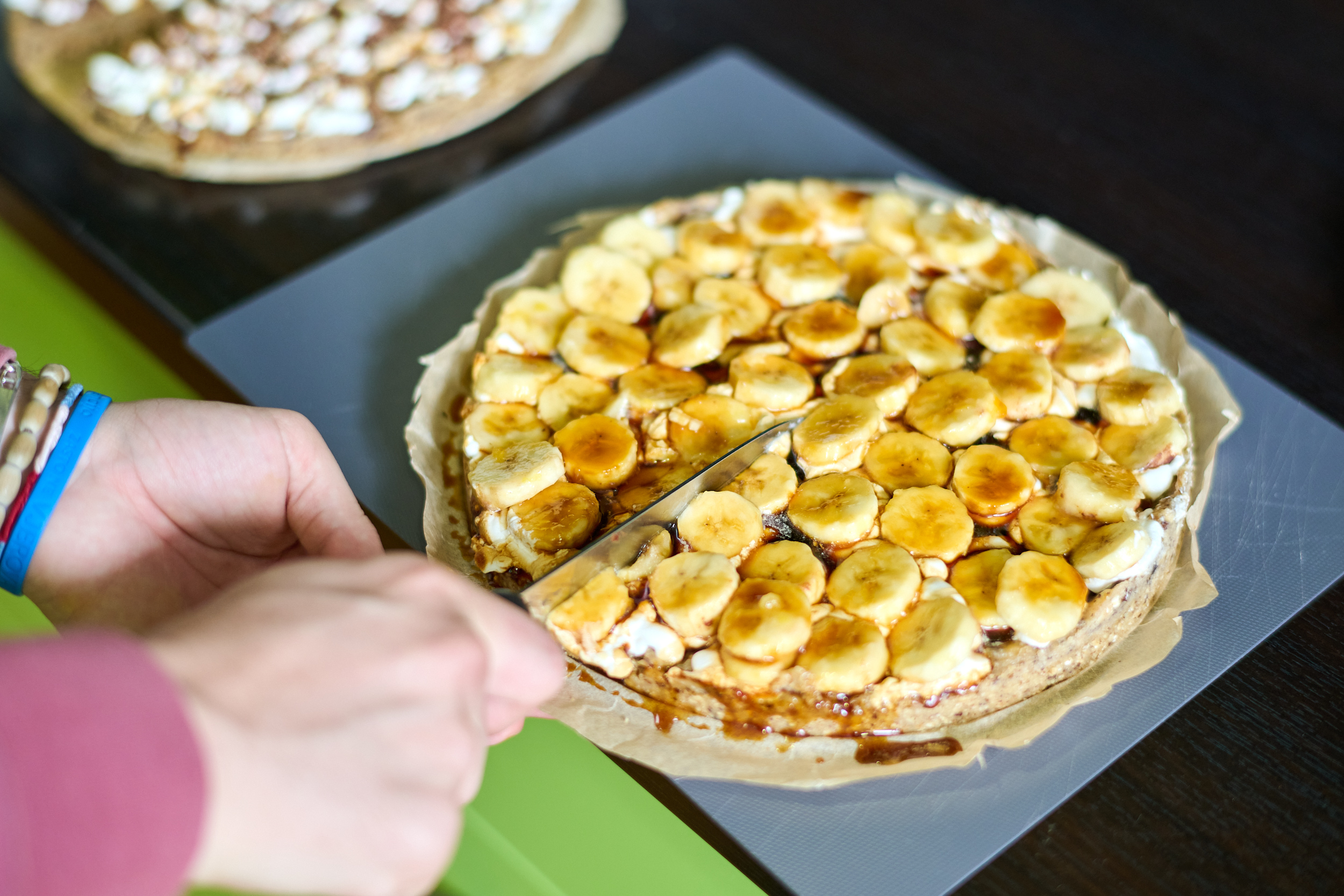 – Za temu ove radionice i nove polaznike odabrali smo nešto jednostavniju po pripremi, ali po temi jako važnu radionicu, a to je priprema međuobroka te smo je nazvali “NAMAZI – NAMAŽI, PA SMAŽI!“ Međuobroci su važni obroci tijekom dana, kako za djecu tako i za odrasle, jer su to obroci koje konzumiramo između svakodnevnih obveza (u školi, na poslu, prije i poslije glavnih obroka), tako da su nam često to i “slabe“ dnevne točke. U trenutku kad nas uhvati glad, umjesto, da imamo pripremljen ili si pripremimo nešto jednostavno i zdravo, posežemo za grickalicama, pecivima, brzom hranom, koja nas zasiti, a nije bogata nutritivnim vrijednostima niti zdrava. Zato su zdravi namazi savršeni za sendviče, uz neki zdravi kreker, a pripremaju se, gotovo, od svih vrsta namirnica. Na radionici smo tako radili tri vrste humusa (slanutak s različitim okusima i začinima) i namaz od crvene leće, namaz od avokada (guacamole) i zeleni namaz od tofua i baby špinata (kombinirajući povrće), namaz (paštetu) od gljiva, te namaz od bučinih sjemenki i kremasti “sir“ – namaz od indijskih oraščića kao primjere namaza od orašida. Namaze smo mazali na domaće kruhove sa sjemenkama suncokreta i bundeve, te slagali u sendviče uz sirove komadiće povrća, salate i ukiseljeno povrće. Jutro smo započeli integralnim vaflima s kakaom, uz sladak i aromatičan napitak čaj latte i čaj od đumbira, a radionicu završili sirovim desertom, tortom s datuljama i bananama, posluženu s bio šlagom i sirupom od datulja. I ovaj put smo oduševili djecu novim okusima, za mnoge i po prvi put degustirane, opravdavši već poznatu stvar za naš projekt, a to je da zdrava hrana, itekako, može biti i fina – zaključila voditeljica radionica zdravog kuhanja Snježana Krpes.