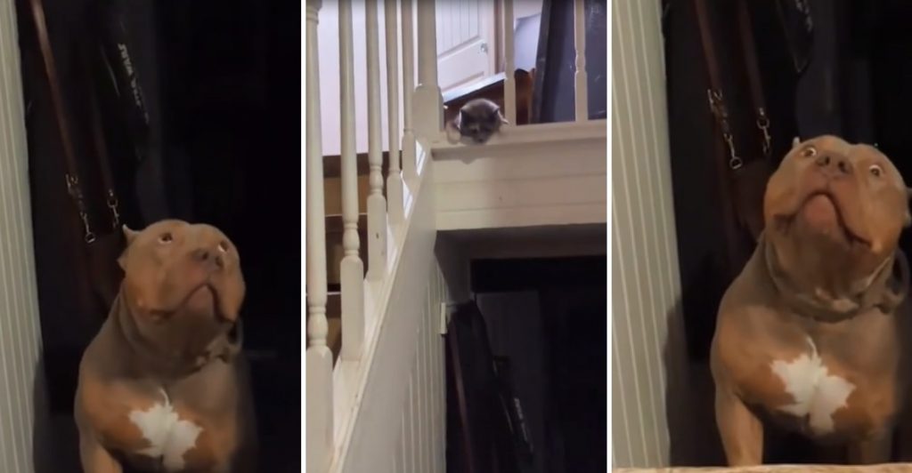 Na TikTok stranici Burleson Bullies objavljena je urnebesna snimka plašljivog pitbulla po imenu Prince, koji se skriva na dnu stepenica zbog mačke koja se nalazi na vrhu. Video je zabilježio njegov preplašeni pogled dok mu vlasnica govori: “U redu je, to je samo mačka.”