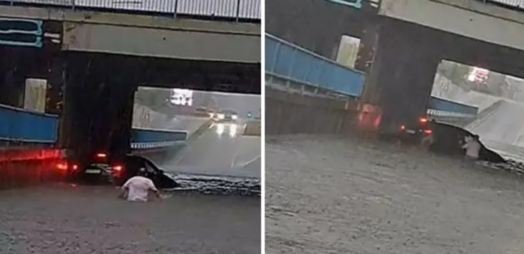 Nesretni čovjek je za vrijeme današnjeg nevremena u Slavonskom Brodu zapeo automobilom u poplavljenom podvožnjaku. Srećom po njega, naišao je Hrvoje Mužević (48) koji je dostavljao hranu, a čim je shvatio što se događa izašao je iz automobila unatoč tuči i kiši koja je silovito padala i pomogao čovjeku, prenose 24sata.