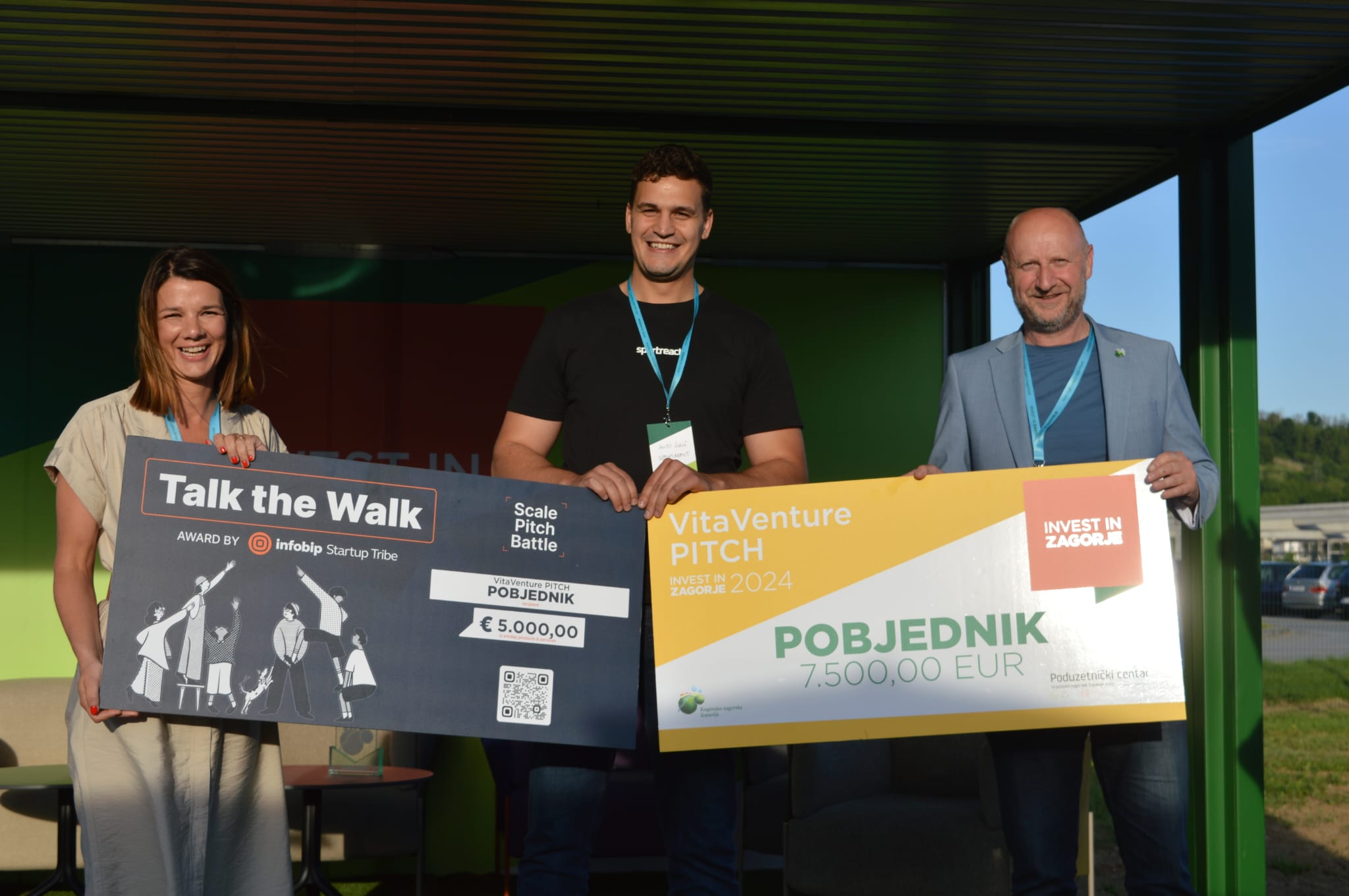 Za svoju inovaciju ‘Sportreact’ je od Krapinsko – zagorske županije osvojio nagradu od 7500 eura te 5000 eura kredita partnera konferencije ‘Infobipa’, koje su pobjedniku uručili župan Željko Kolar i direktorica Poduzetničkog centra Helena Matuša.