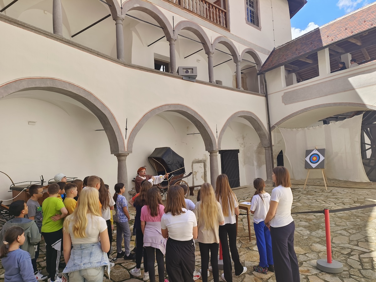 – Posjetili smo i Muzej krapinskih neandertalaca te Muzej oldtimera Presečki. Srijedu smo obilježili dramsko-pedagoškom radionicom ekološke tematike koju je pripremila učiteljica njemačkog jezika Alexandra Krklec, a druženje smo nastavili u Dvoru Veliki Tabor na radionici gađanja lukom i strijelom te razgledavanje dvorca pod stručnim vodstvom. Naša učiteljica Alexandra je vrlo vješto cijelo vrijeme prevodila sve na njemački jezik kako bi naši gosti mogli jednako uživati u aktivnostima kao i naši učenici. Druženje smo nastavili u Grešnoj Gorici gdje su se nakon ručka djeca imala prilike igrati sa životinjama na imanju u predivnoj prirodi Desinića. Privodeći aktivnosti planirane za taj dan kraju, posjetili smo Muzej ‘Staro selo’ Kumrovec uz stručno vodstvo. Upoznali smo se s načinom života i izgledom kuća u Zagorju te približili našim učenicima i gostima djelić naše povijesti – pričaju nam iz škole.