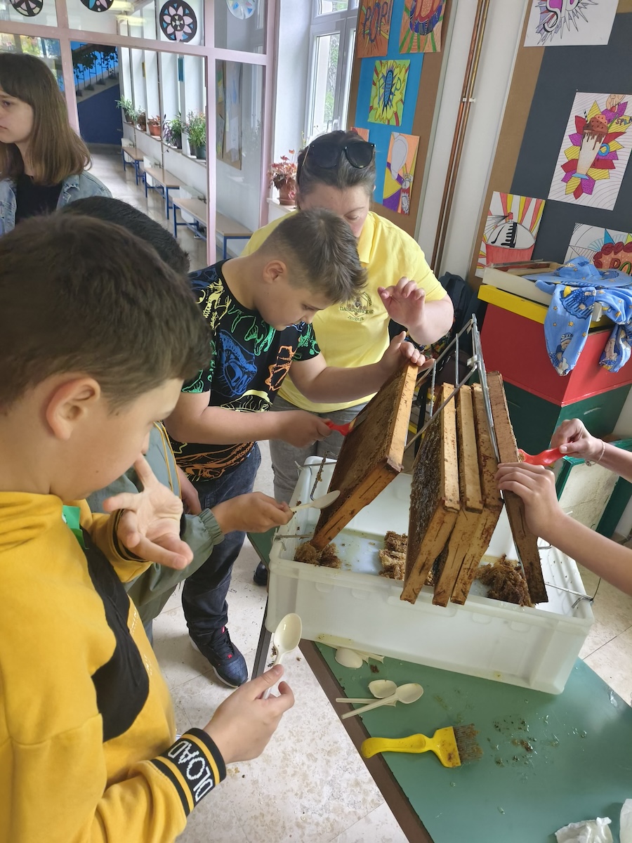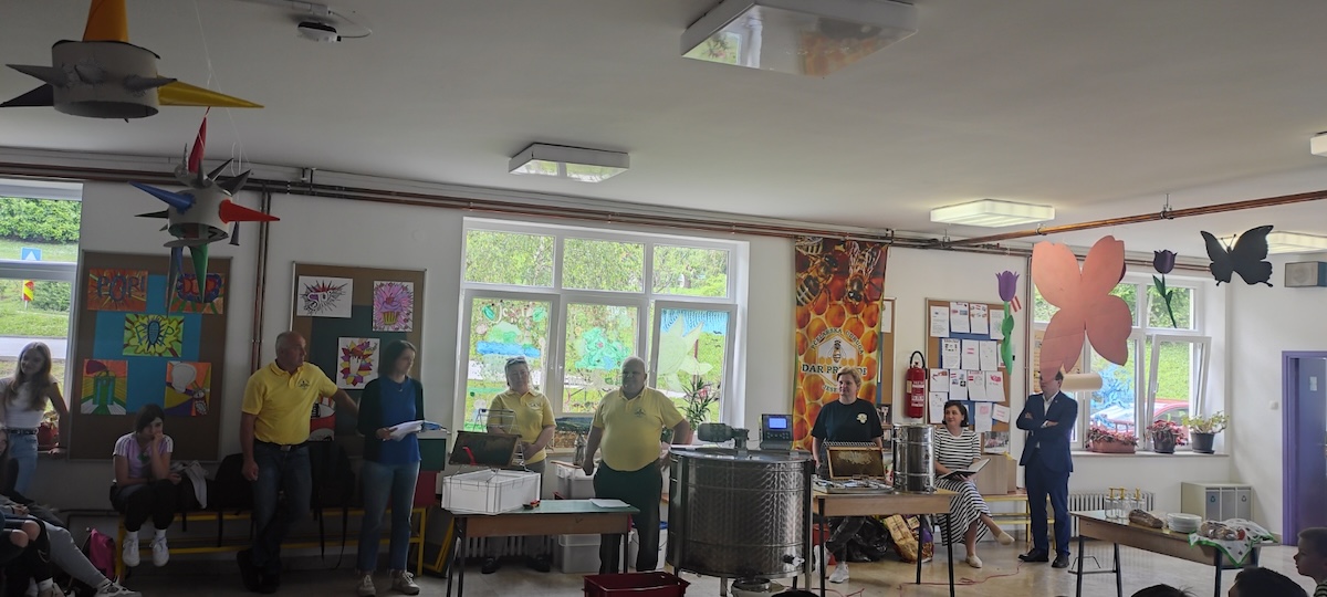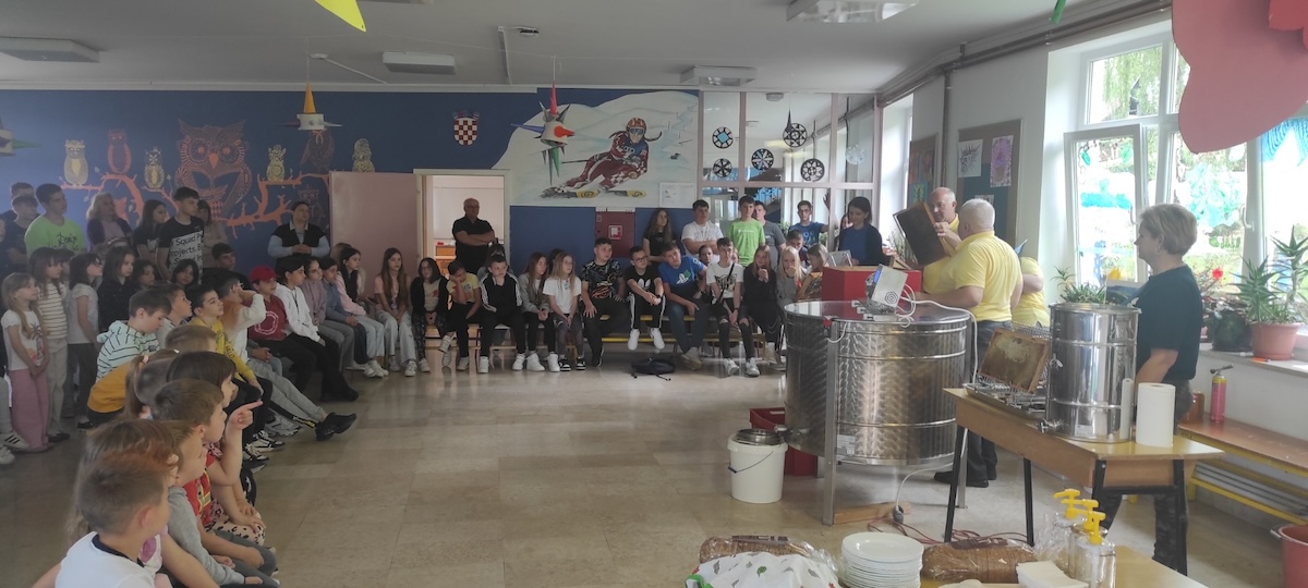 – Iduće predavanje o vrcanju meda zorno su prikazali članovi Udruge pčelara “Dar prirode“ iz Jesenja uz predsjednika Mirka Ranogajca. Navedenom predavanju nazočili su svi učenici OŠ Gornje Jesenje, učenici i učitelji iz Beča te starija vrtićka skupina djece iz Dječjeg vrtića Jesenje uz svoje odgajateljice. Gospodin Ranogajec upoznao nas je s vrstama meda, njegovim prednostima za zdravlje, proizvodima za koje se koristi med, a sve nas je ponajviše oduševila prezentacija vrcanja meda i degustacija istog – dodaju.