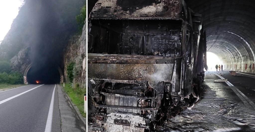 U prometnoj nesreći u tunelu sudjelovala su dva automobila, Škoda i Volkswagen te jedno teretno vozilo na kojem je izbio požar.