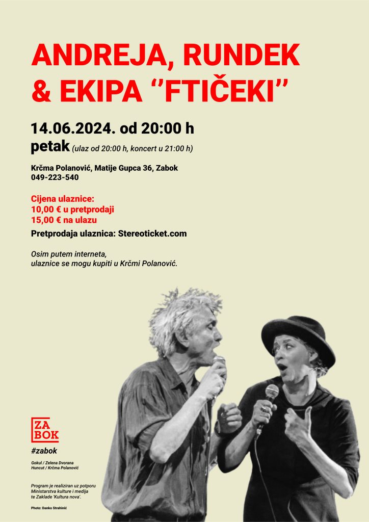 Glazbenici Andreji će se na pozornici pridružiti i Zagorec rodom, Darko Rundek i ekipa ‘Ftičeki’
