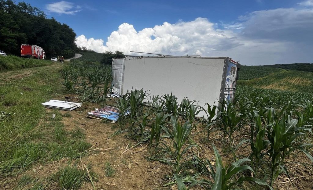 Kamion je jučer izletio s ceste i završio na boku u Podravini, između Ludbrega i Koprivnice, prenosi Danica.