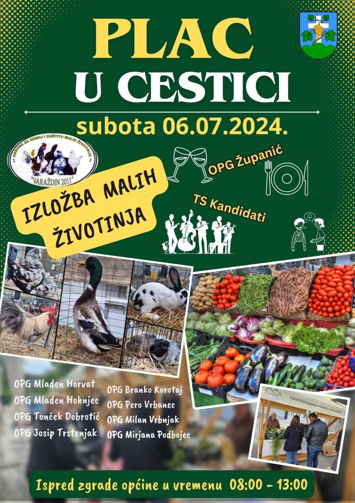 U sklopu placa u Cestici i izložbe malih životinja nudit će se i gastro ponuda i ponuda pića OPG-a Županić, a cijela manifestacija će biti popraćena glazbenim nastupom Tamburaškog sastava Kandidati.