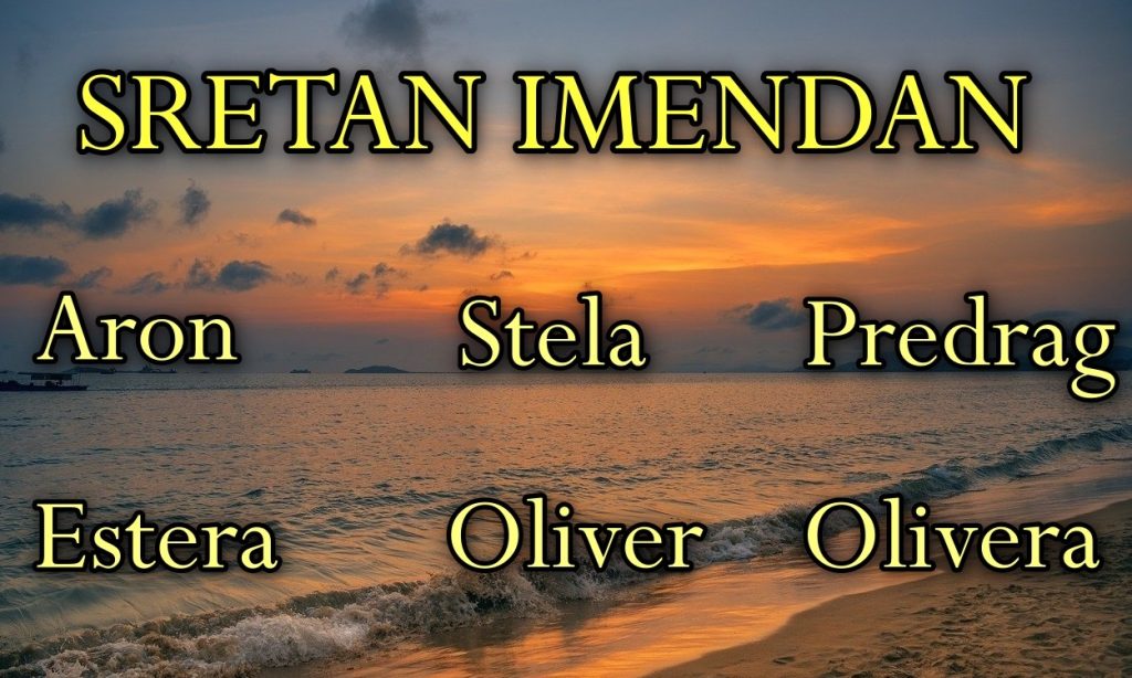 Danas imendan slave Aron, Estera, Stela, Oliver, Olivera i Predrag.