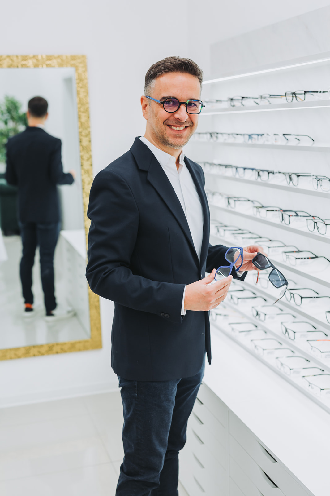 Očni centar Zabok prostire se na impresivnih 300 kvadrata, a interijer odiše elegancijom i luksuzom koji posjetitelje osvajaju na prvi pogled. Pažljivo dizajniran prostor kombinira modernu sofisticiranost s funkcionalnošću, stvarajući ugodnu atmosferu zbog koje ćete se zasigurno poželjeti vratiti. Svaka zona, od prodajnog prostora do prostorija za oftalmološke preglede, izgrađena je od visokokvalitetnih materijala i uređena u neutralnim tonovima, ali s posebnim naglaskom na detalje koji pružaju osjećaj topline. Korištenje vrhunskih elemenata rasvjete i dizajnerskog namještaja dodatno naglašava eleganciju ovog optičkog centra, čineći ga mjestom gdje se briga o vidu susreće s estetikom i luksuzom.