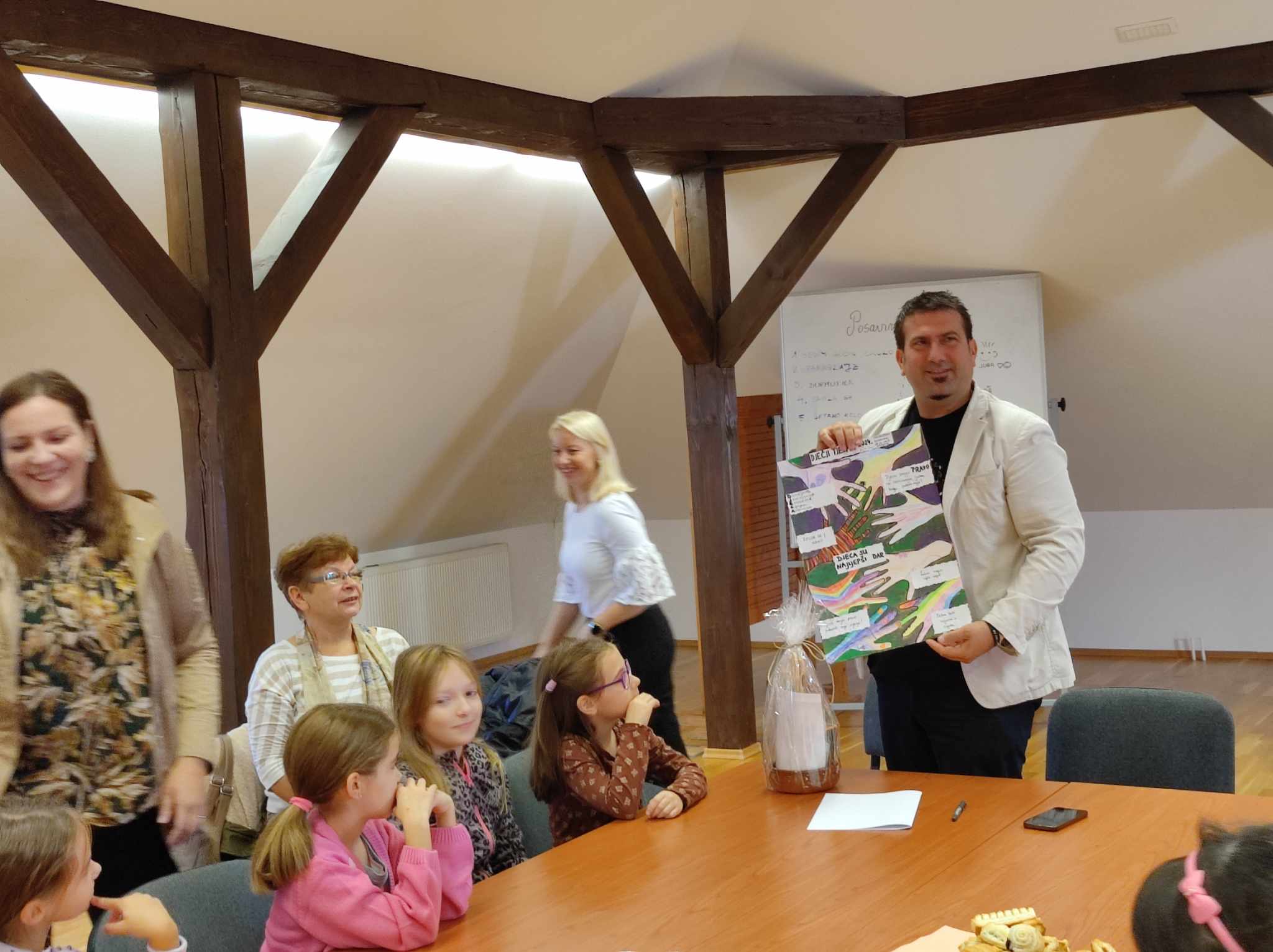 Za početak Dječjeg tjedna u Svetom Križu Začretju, djeca su okitila Trg, a potom su posjetili načelnika Marka Kosa gdje su uz mandarine vodila ugodan razgovor.