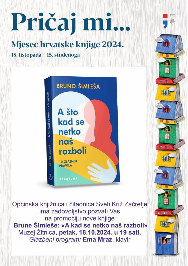 Povodom ovogodišnjeg ‘Mjeseca hrvatske knjige’ koji se obilježava od 15. listopada do 15. studenoga, u Sveti Križ Začretje u organizaciji Općinske knjižnice i čitaonice dolazi poznati autor Bruno Šimleša.