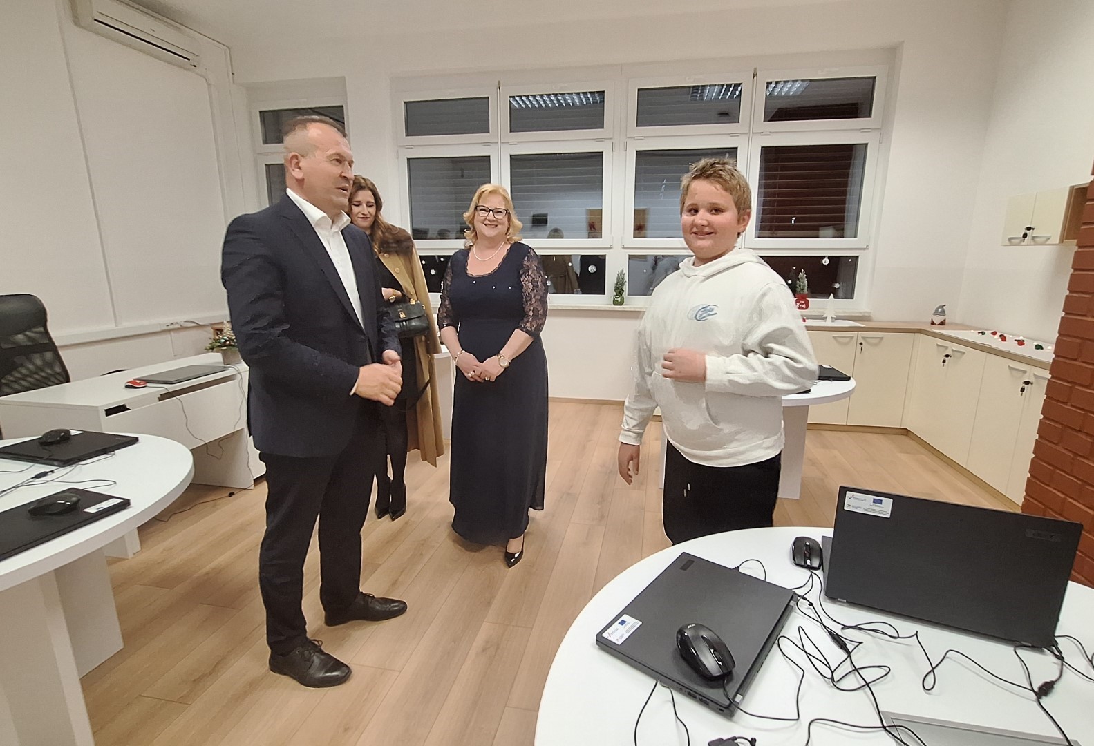 Nakon božićne priredbe se pridružio roditeljima, bakama, djedovima i djelatnicima škole te zajedno s ravnateljicom OŠ Bisag Draženkom Švelec-Juričić i načelnikom Općine Breznica Stjepanom Krobota provjerio kako škola izgleda nakon uspješno izvedenih radova. U cijeloj zgradi postavljena je nova keramika, obnovljeni su svi podovi, izvedeni soboslikarski radovi i zamijenjene ograde na stubištu i galeriji, a školski prostori opremljeni su novim namještajem.