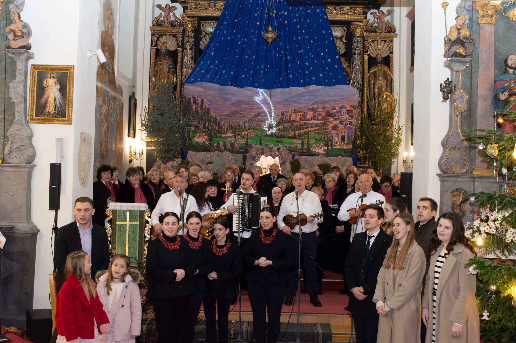 Kao i proteklih godina izvođene su isključivo božićne skladbe i popevke odgovarajuće crkvenom prostoru, a posjetitelji su uživali u repertoaru od onih najstarijih poput ‘U to vrijeme godišta’, ‘Čestit svijetu’, ‘O, Isuse poljubljeni’, preko prelijepih ‘Cmreki v snegu spiju’ i ‘Prva ju vura’, pa do novijih pjesama poput ‘Vratite nam malog Isusa’.