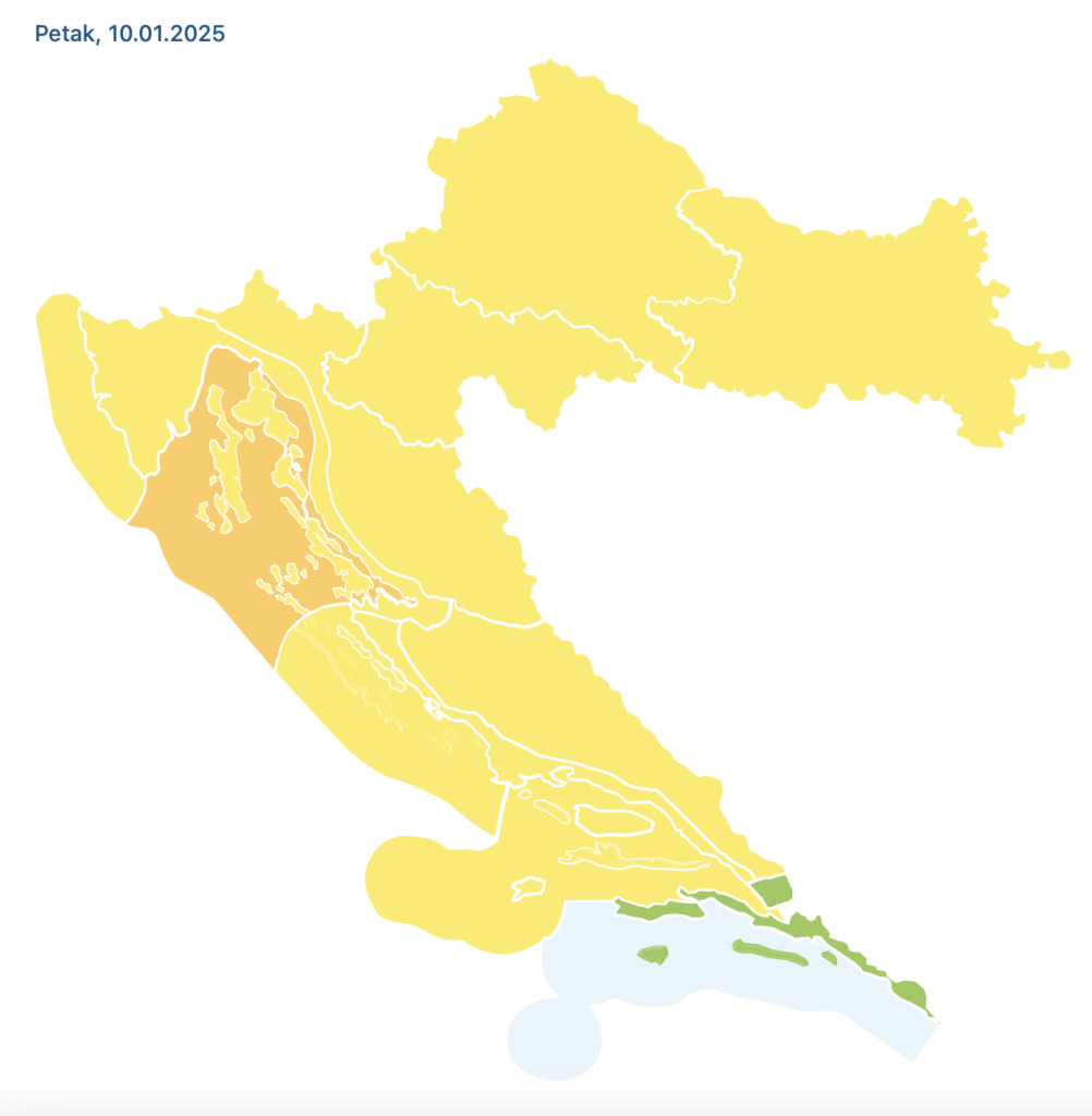Vjetar će u noći naglo okrenuti s jugozapadnog na jak sjeverni i sjeveroistočni, mjestimice moguće i olujan. Na Jadranu će zapuhati umjerena i jaka bura, koja će se sa sjevera do kraja dana proširiti na veći dio obale.